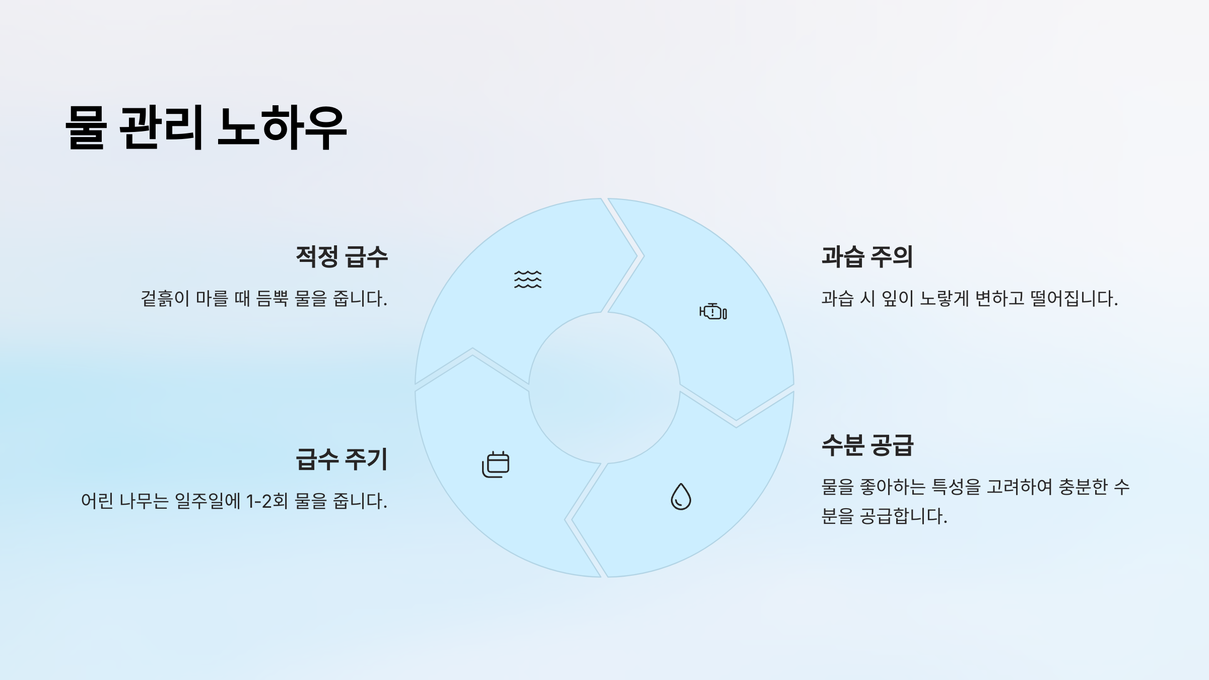 | 물 주기 | 건조 시 물주기 (과습은 금물) |