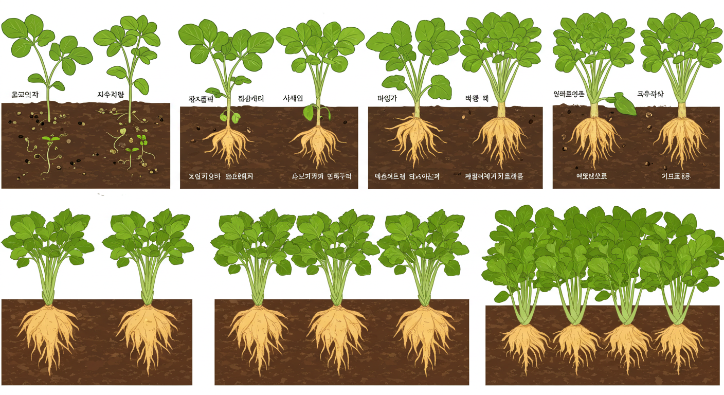 | 수확 시기 | 파종 후 4555일, 뿌리 굵기 23cm일 때 |