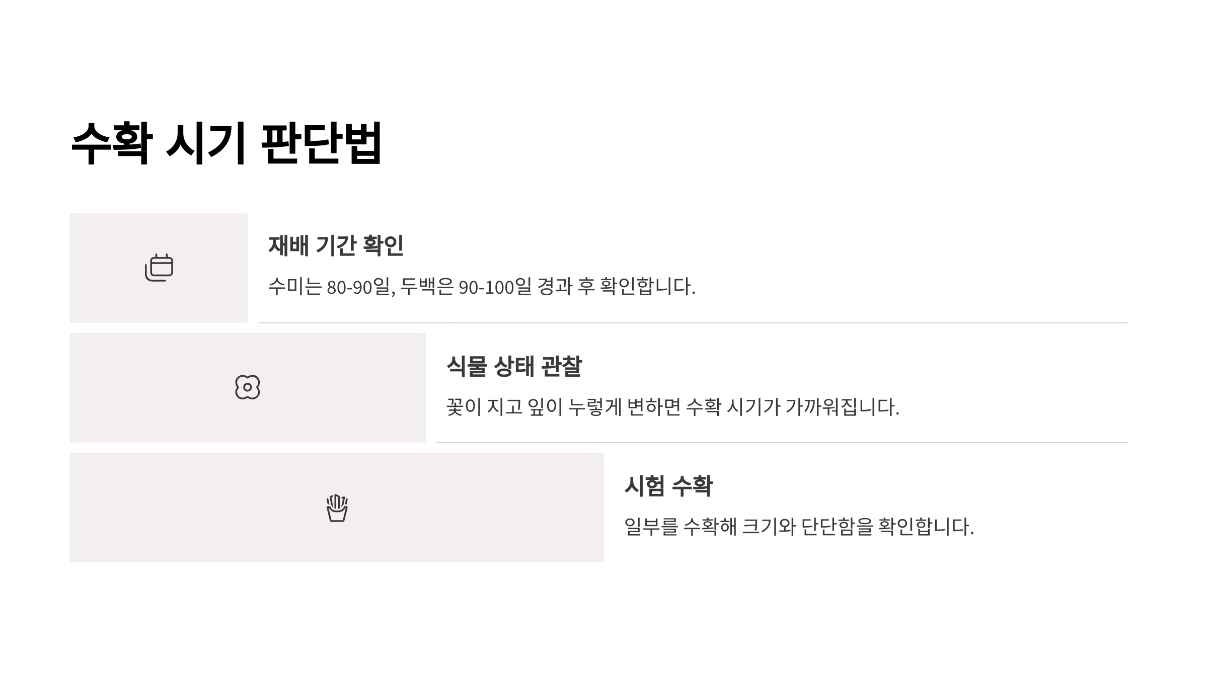 보통 2~3회에 걸쳐 북주기를 해주는 것이 수확량을 늘리는 비법이에요!