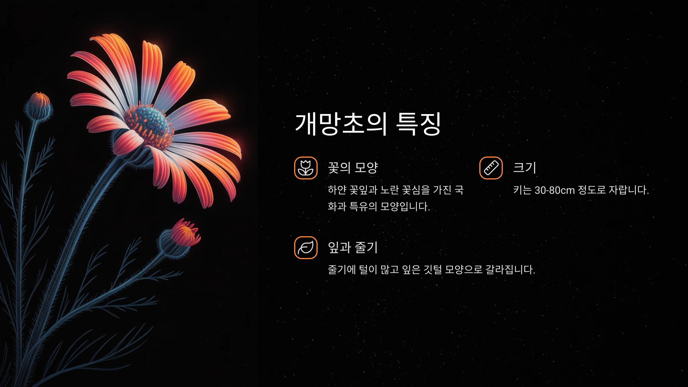 오늘은 여름 들판의 소박한 주인공, 개망초에 대해 알아보았습니다. 흔해서 무심코 지나쳤던 꽃이지만, 알고 보니 참 다채로운 매력을 가진 친구였죠? 이번 주말에는 잠시 시간을 내어 주변에 핀 개망초를 찾아보고, 그 소박한 아름다움과 생명력을 느껴보시는 건 어떨까요? 향긋한 개망초나물은 내년 봄을 기약하며, 지금은 예쁜 꽃을 마음껏 감상해 주세요! 😊