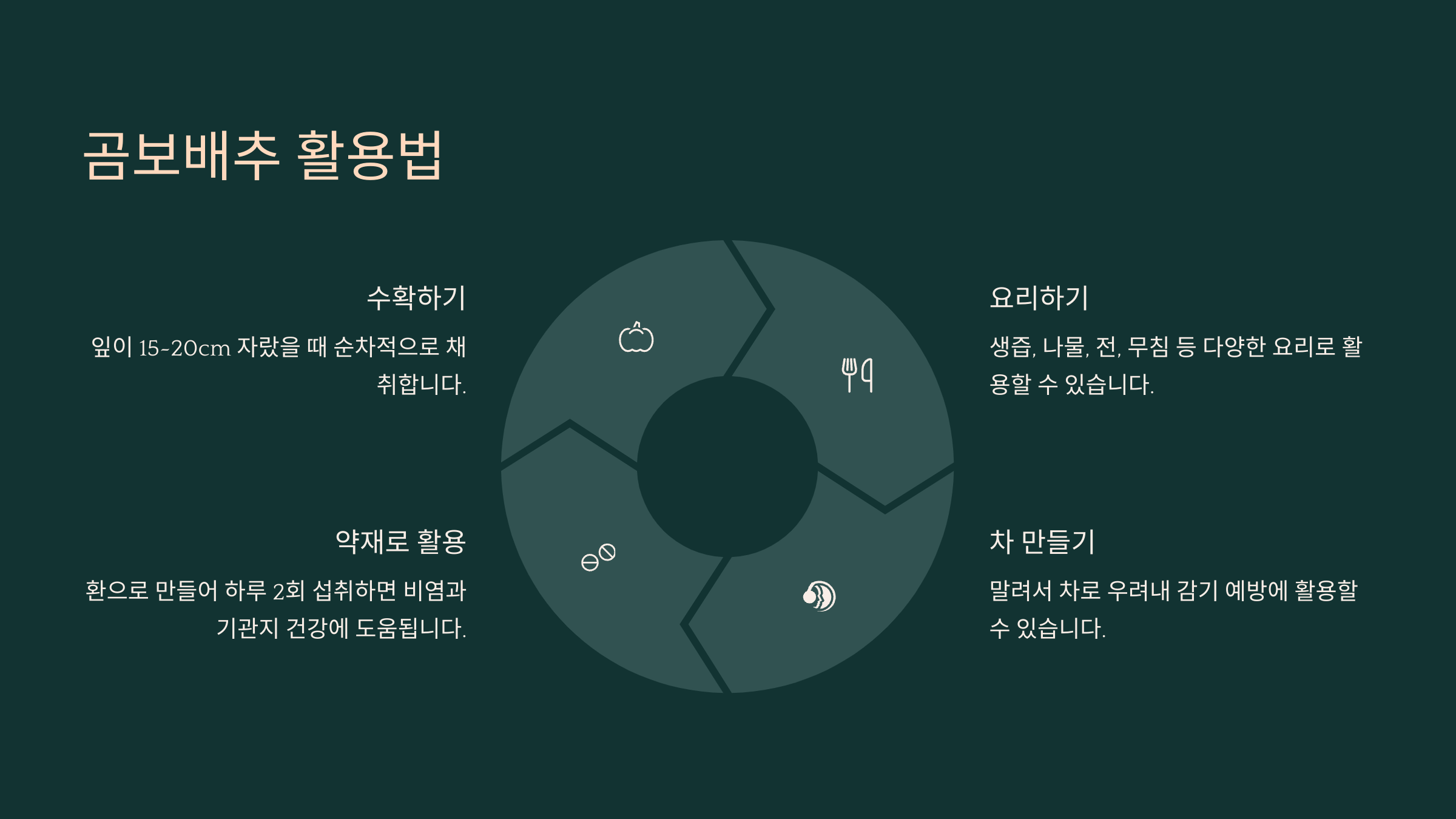 이 외에도 아토피 같은 피부 질환이나 여성 질환에도 좋다고 알려져 있으니, 정말 '밭에서 나는 천연 항생제'라고 불릴 만하죠?