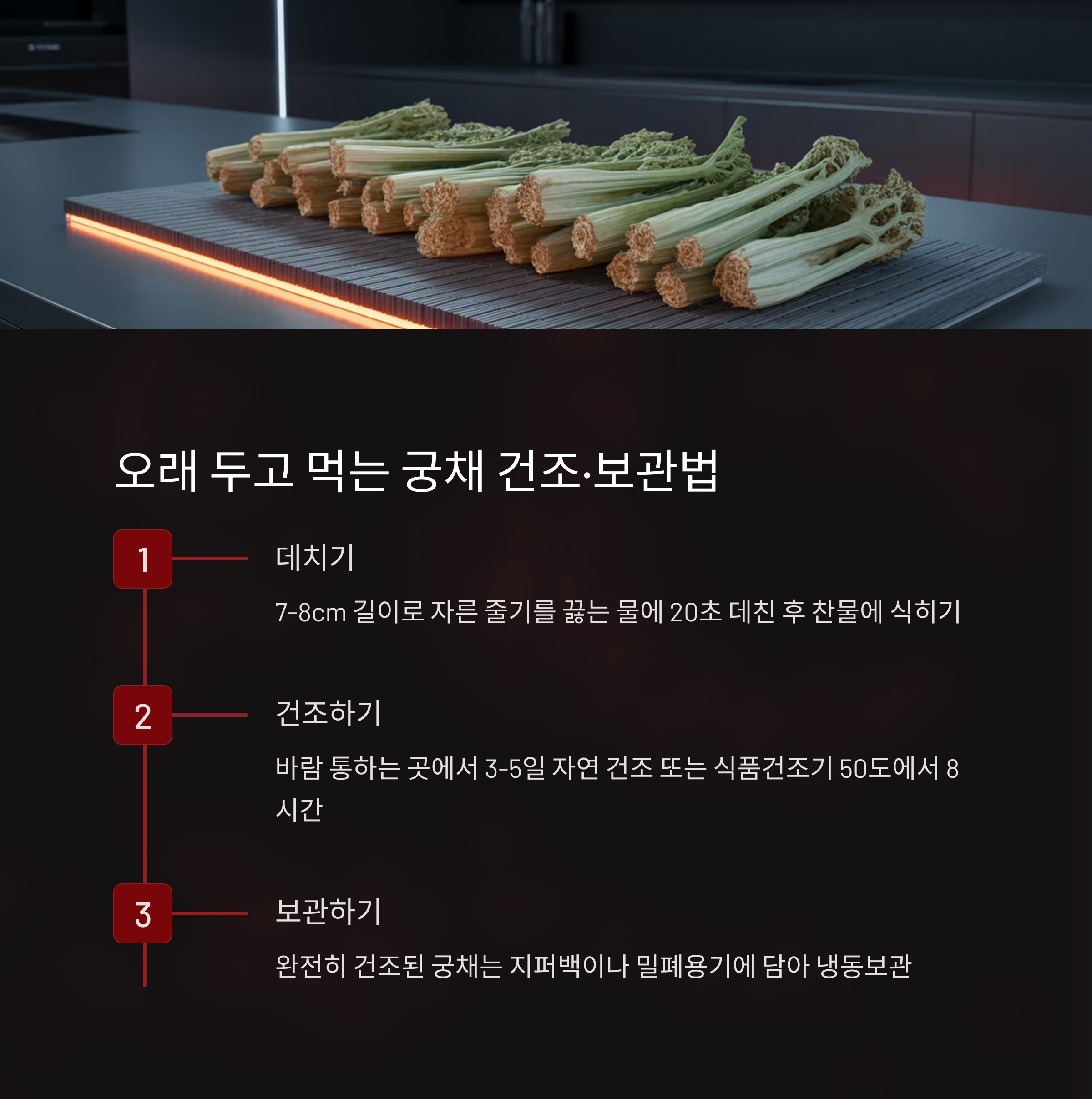 궁채는 수확 후 바로 데쳐서 건조하면 저장성이 뛰어나