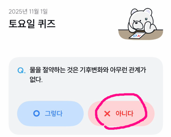 사실 정답을 맞히는 것보다 더 중요한 것은 퀴즈를 통해 얻는 지식과 환경 보호에 대한 의식 함양이라고 생각해요. 부담 없이 즐거운 마음으로 참여해 주세요.