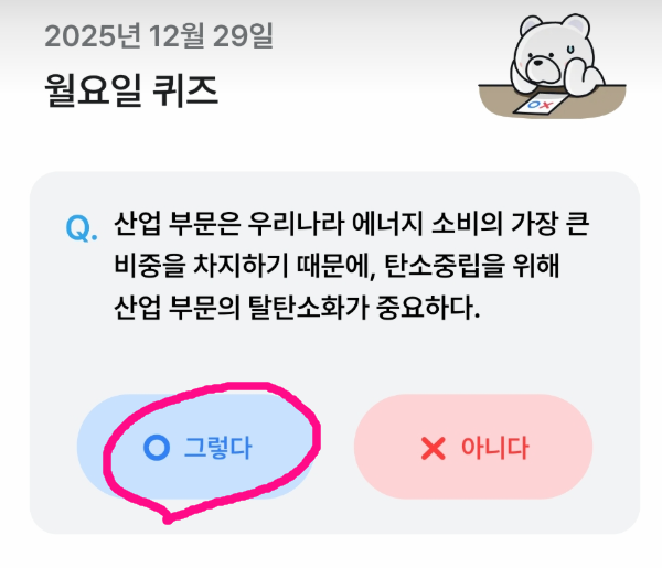 2025년 한 해 동안 기후동행 퀴즈는 많은 사람들에게 기후 행동의 중요성을 알리고 실천을 독려하는 데 큰 역할을 해왔습니다. 하지만 기후 위기는 단발성 노력으로 해결될 수 있는 문제가 아닙니다. 지속적인 관심과 노력이 필요하죠. 이 퀴즈를 통해 얻은 지식을 바탕으로 여러분의 일상에 작은 변화를 만들어 보시는 건 어떨까요?