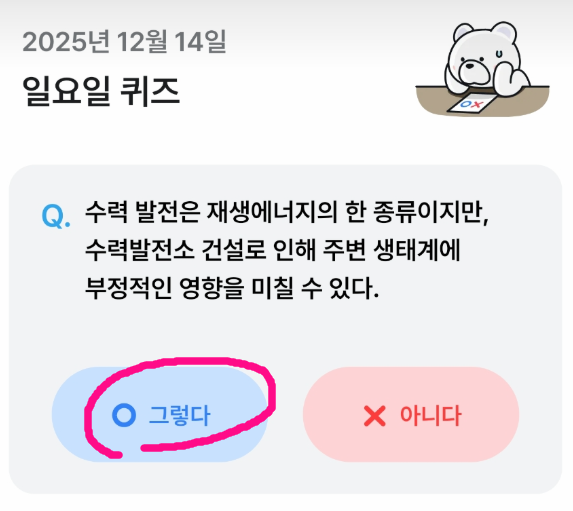 - 일부 퀴즈는 ‘기후행동 기회소득’ 앱을 통해 참여하며, 정답 시 포인트 적립이 가능합니다.