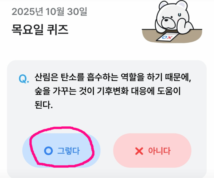 기후동행퀴즈(기후행동) 10월 30일 정답 환경 지식 쌓고 포인트 적립하는 방법