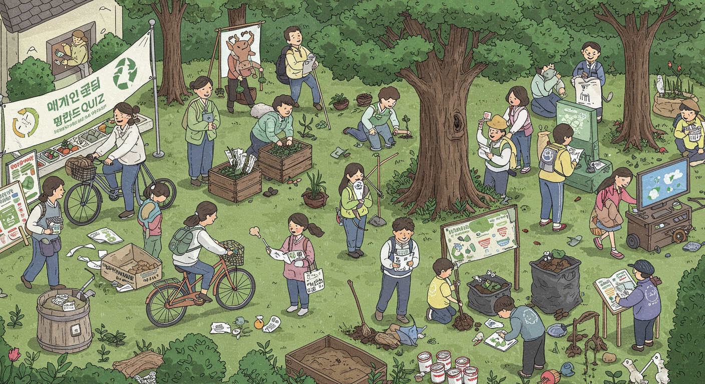 일상 속 퀴즈로 환경을 배우고 보상까지 받는 스마트한 참여형 프로그램이에요