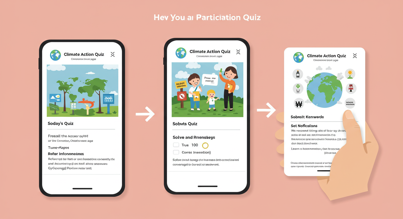 하루 한 번 알림만으로도 꾸준히 참여할 수 있어요. - 환경 상식 쌓기