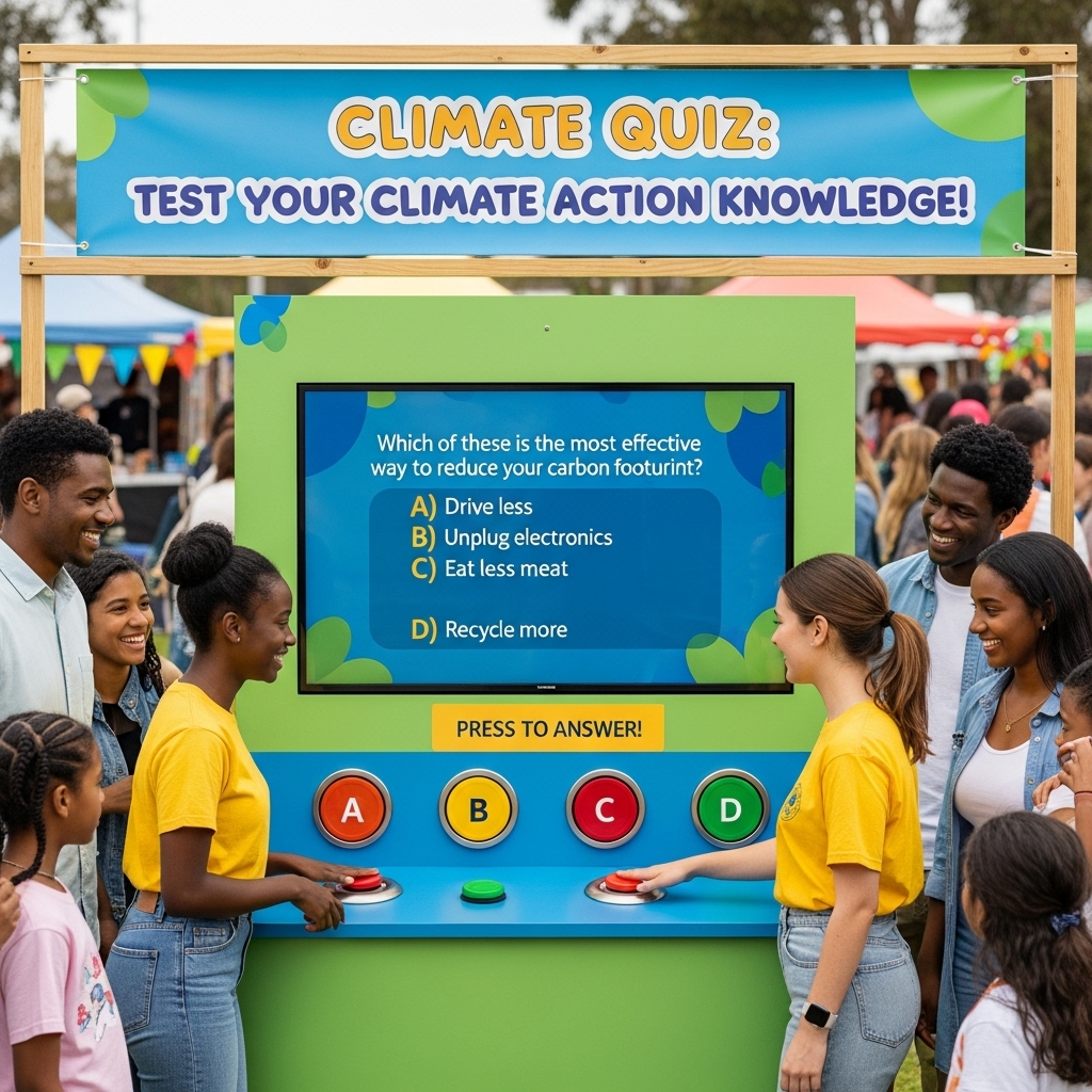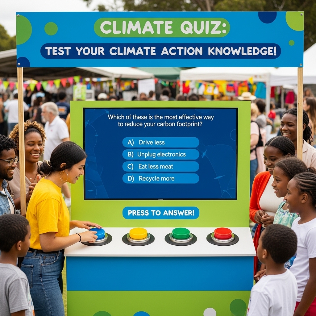 퀴즈 문제는 환경 보호, 재생 에너지, 탄소 중립 등 다양한 주제를 다루므로, 학습과 참여를 동시에 경험할 수 있어요.