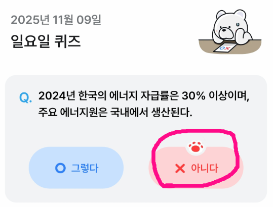 - 오답일 경우 리워드가 지급되지 않으니 신중히 답하세요.