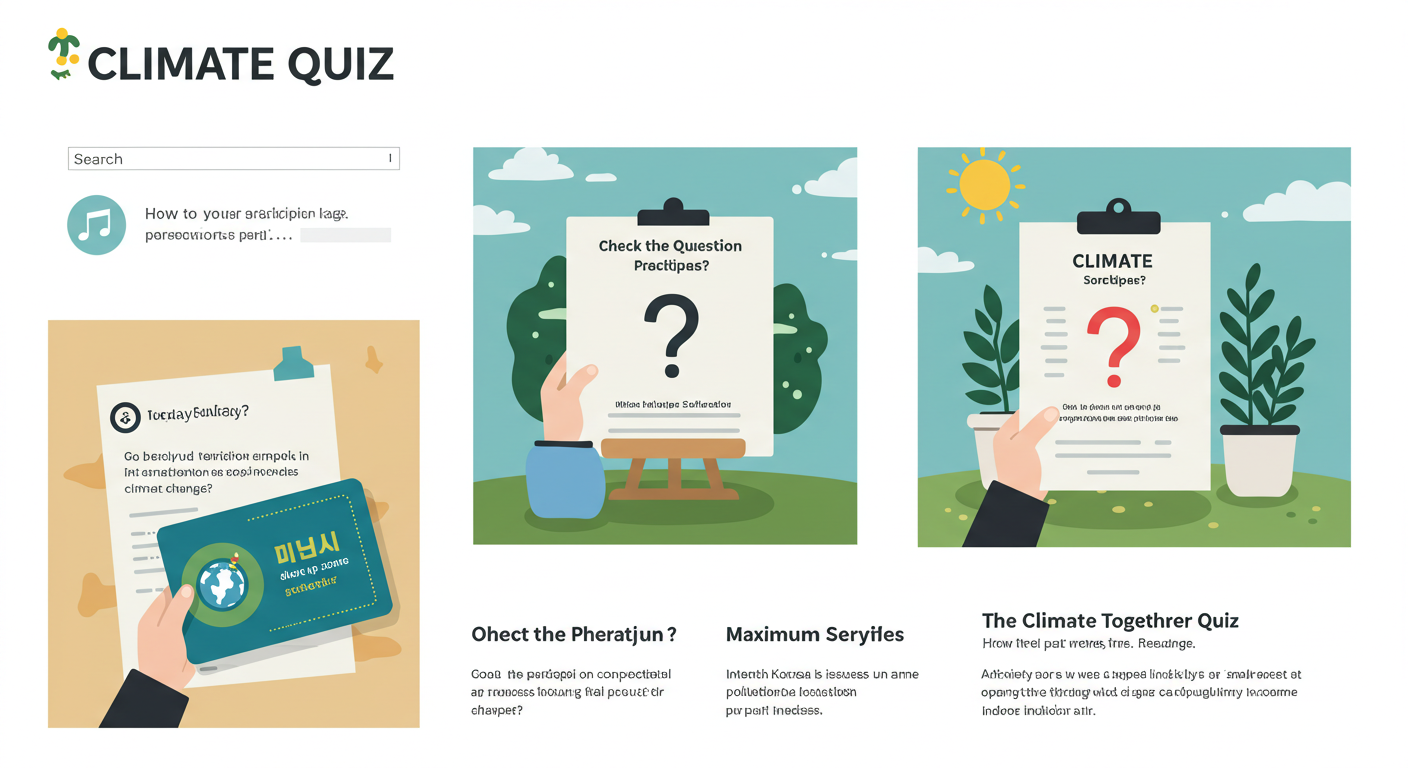 예를 들어, 플라스틱 줄이기, 대중교통 이용, 에너지 절약 같은 행동들을 퀴즈를 통해 다시 생각하게 돼요.