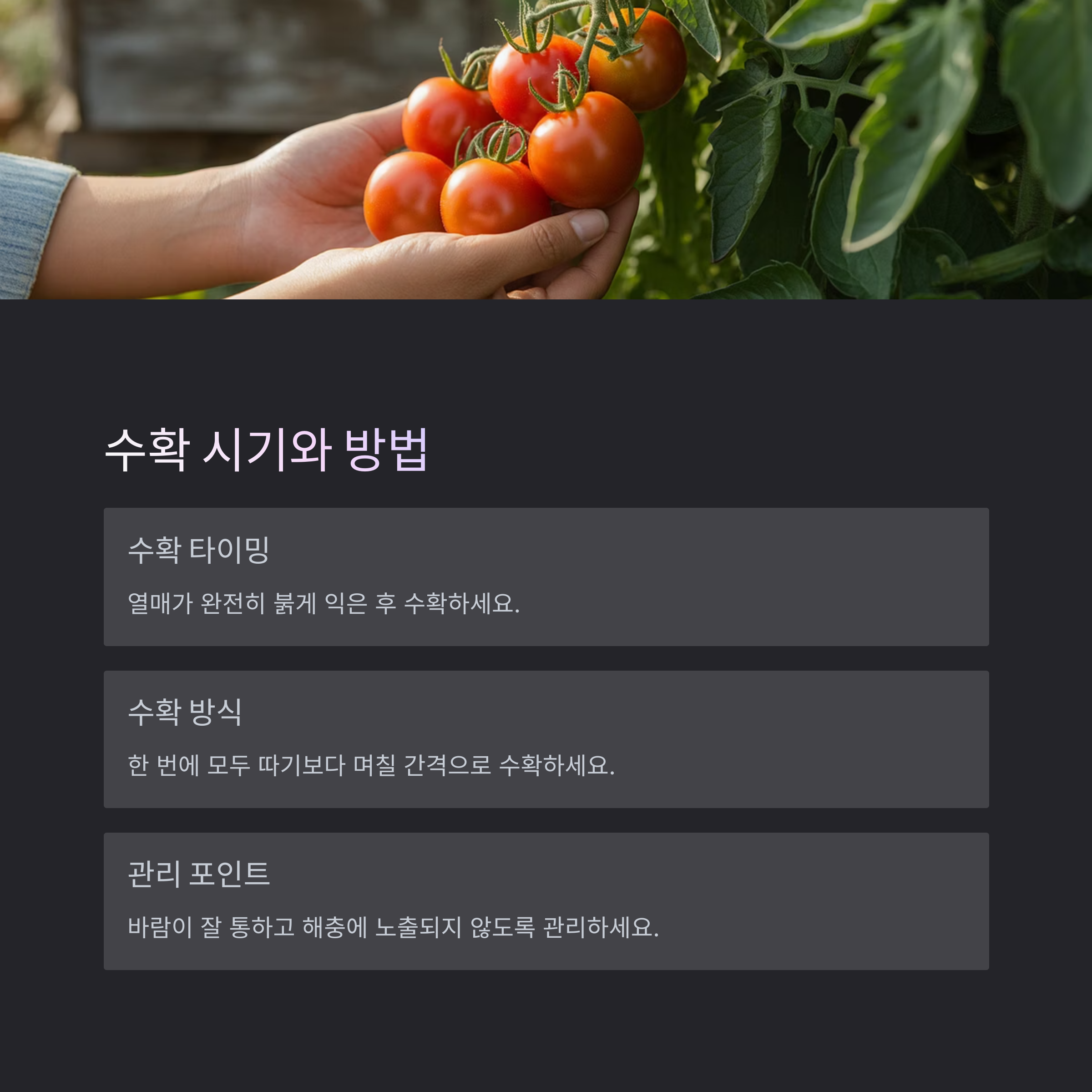 방울토마토는 열매 색이 완전히 붉게 익은 후 수확해야