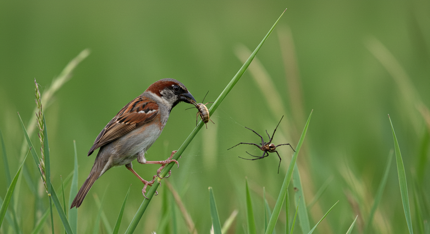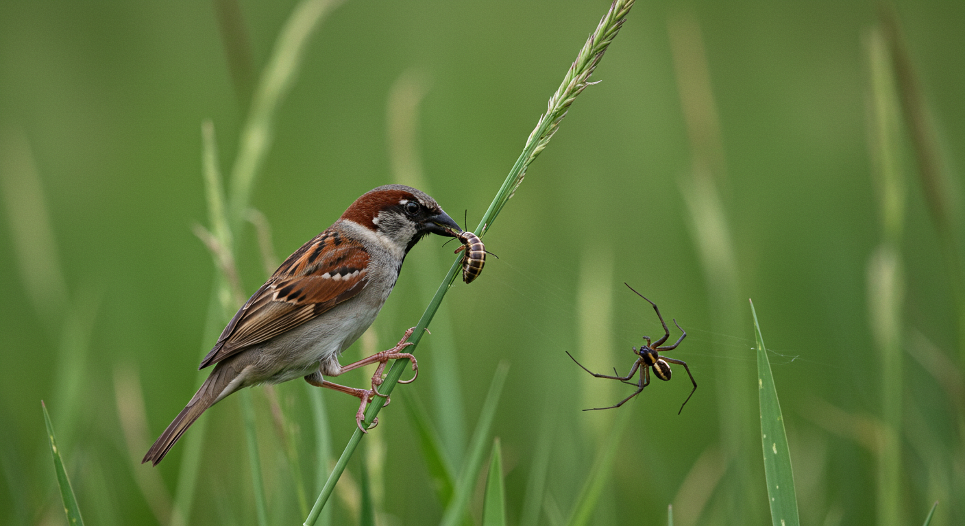 든든한 천적: 우리 주변의 참새와 거미가 러브버그를 관리해줍니다. 🐦🕷️
