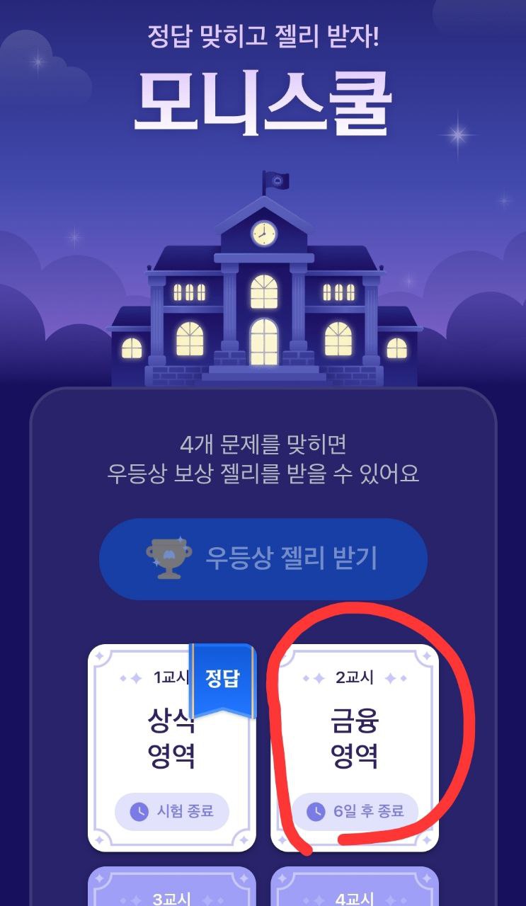 모니스쿨 선택 교시별 퀴즈 선택 (상식·금융·생활 중 하나)