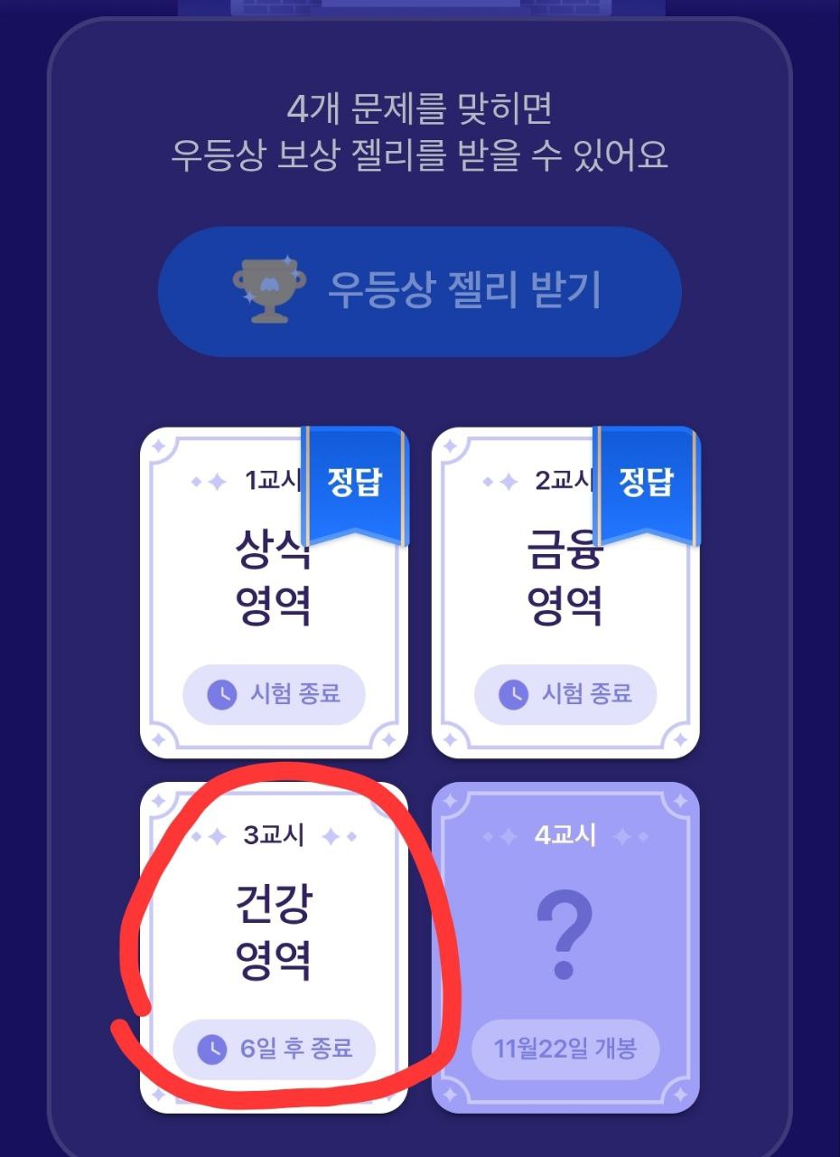 매주 혹은 시즌별로 열리는 퀴즈 교시를 통해 문제를 풀고, 정답을 맞히면 ‘젤리’라는 포인트 보상을 받을 수 있습니다.
