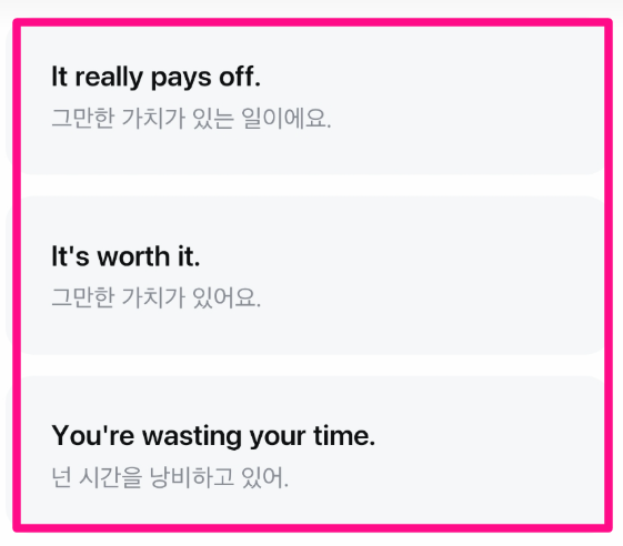 짧은 문제라도 꾸준히 풀면 학습 효과가 누적되어 일상 속 영어 습관을 만들 수 있어요.
