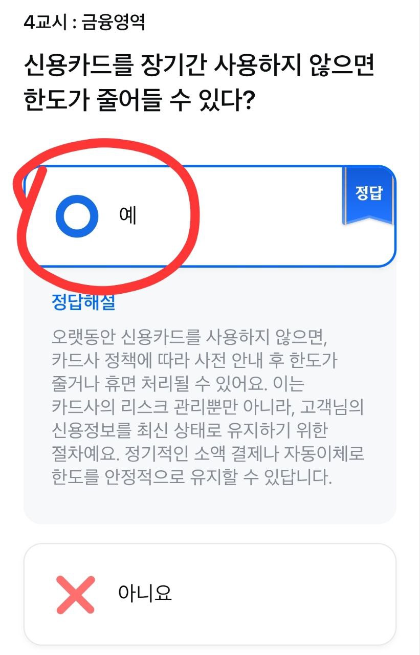 | 3 | 교시별 퀴즈 풀기 | 금융, 상식, 건강 등 주제별 문제 |