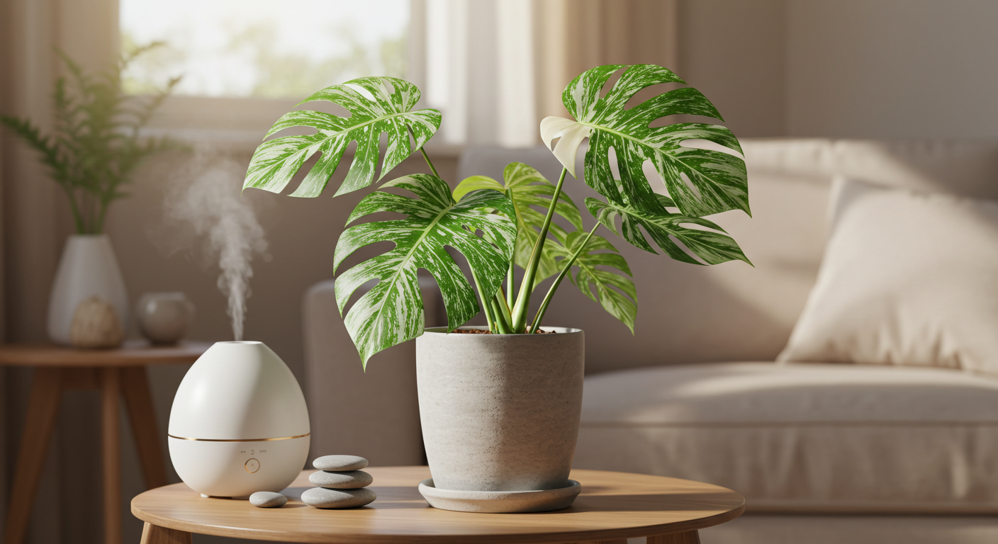 몬스테라 알보는 열대우림이 고향인 만큼 높은 습도를 아주 좋아해요. 50~70% 정도의 습도가 이상적입니다. 습도가 너무 낮으면 잎 끝이 마르거나 갈변할 수 있고, 새 잎이 나올 때 찢어지거나 예쁘게 펴지지 않을 수 있어요. 제가 이걸 몰랐을 때 새 잎이 자꾸 갈라져서 속상했던 기억이 나네요. 😭