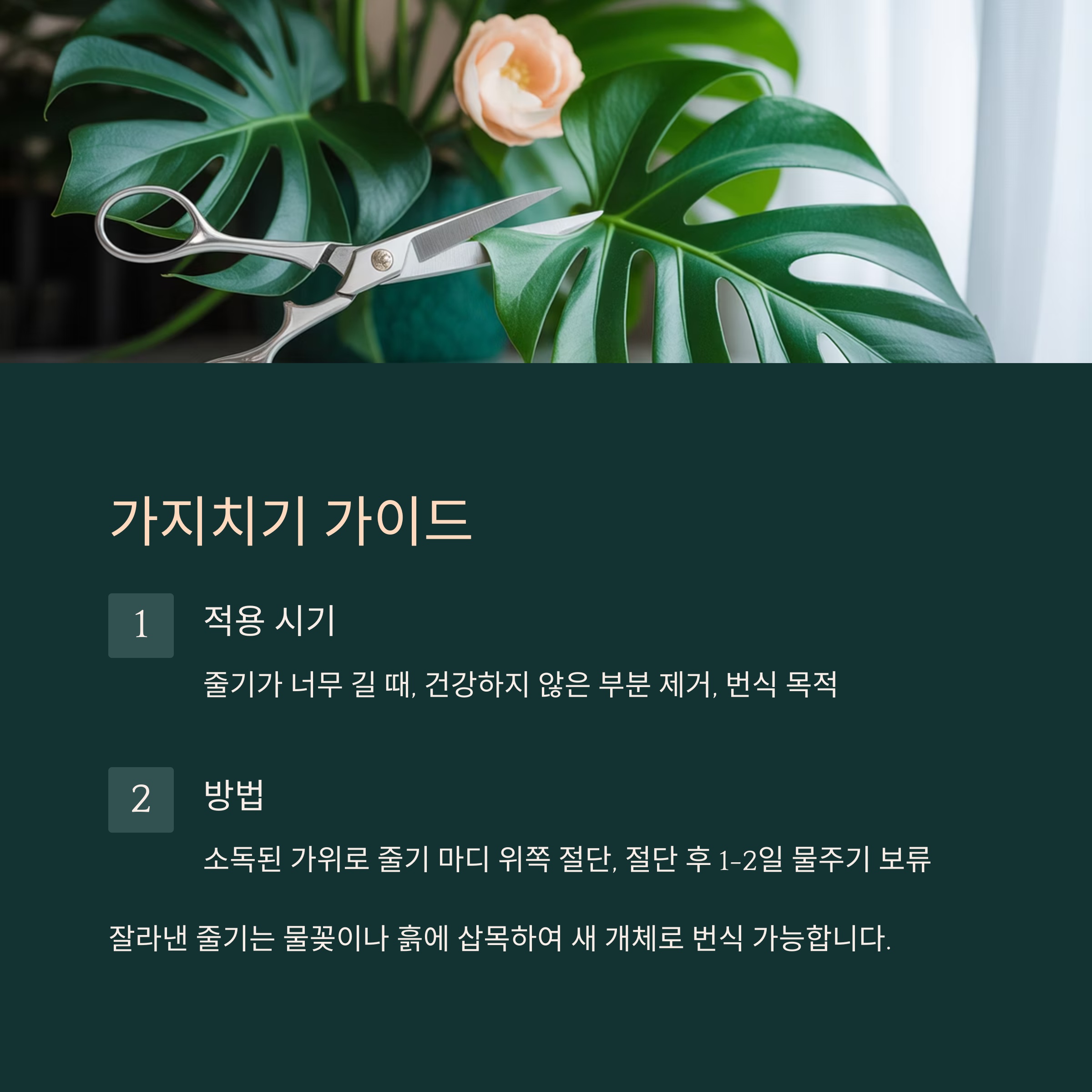 | 정리하기 | 길게 뻗은 부분만 잘라내기 (가위 소독 필수) |
