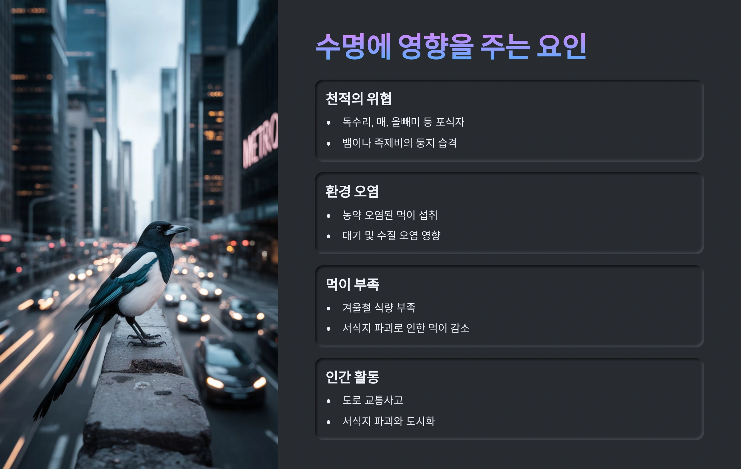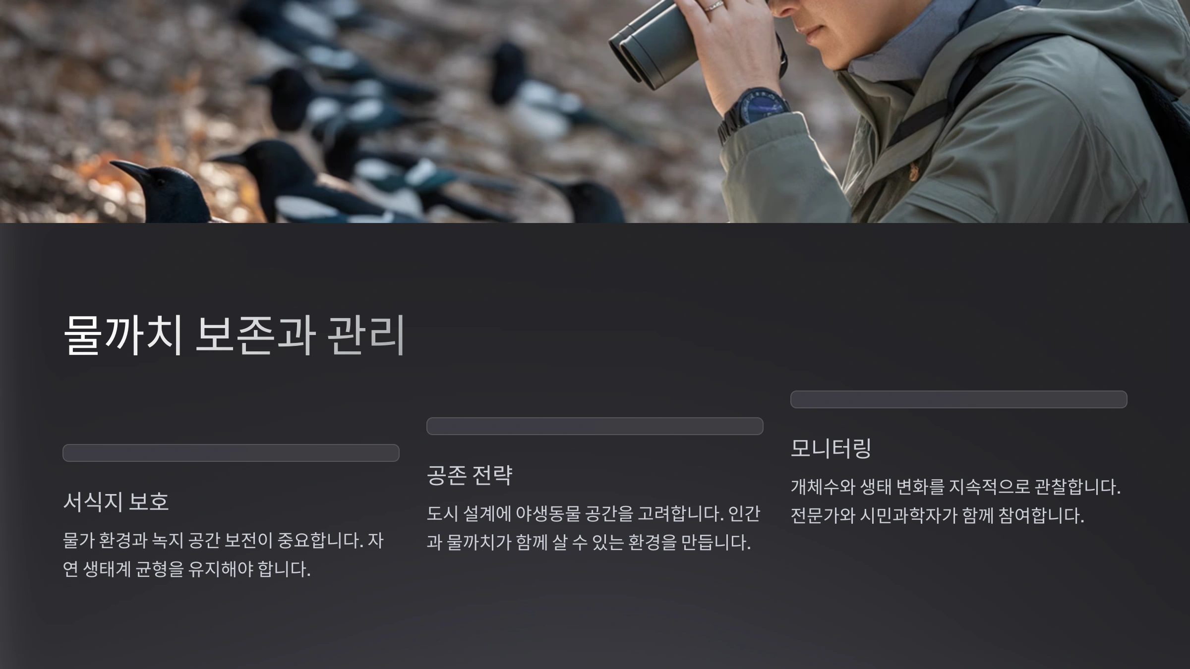 | 사람 음식 제공 금지 | 쓰레기 관리로 사람-새 거리 유지 |