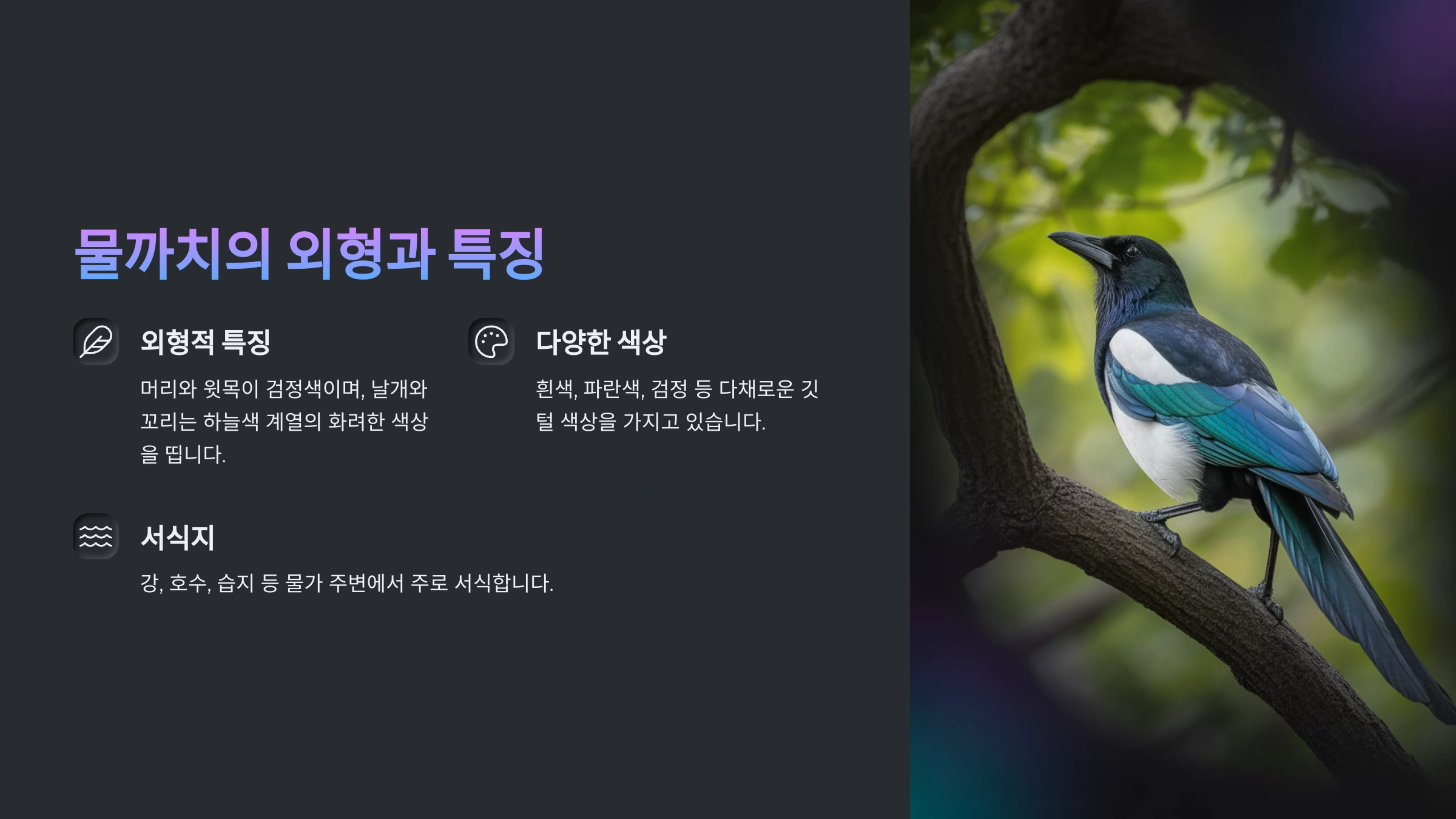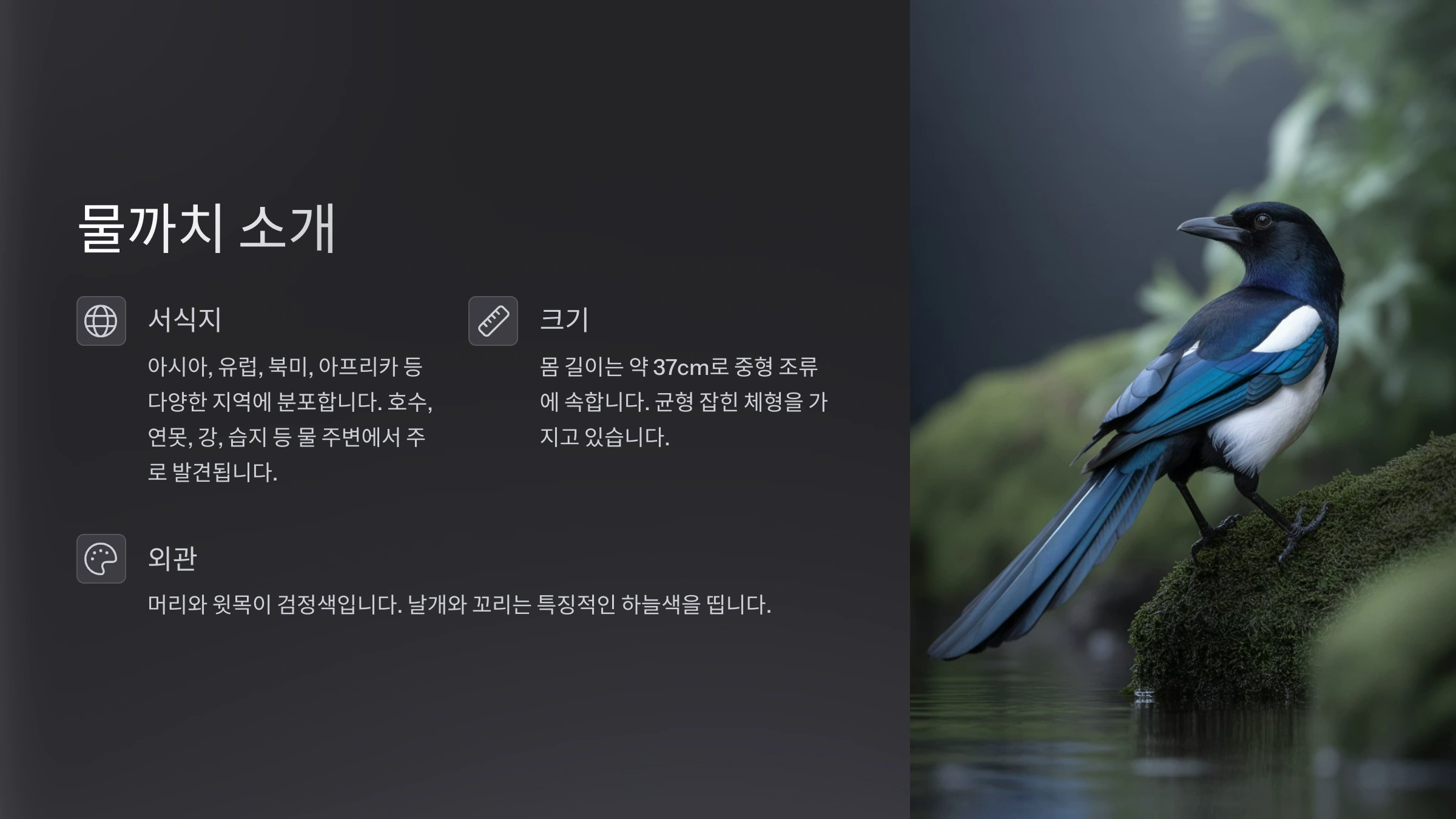 🍏 물까치 서식 환경 요약표