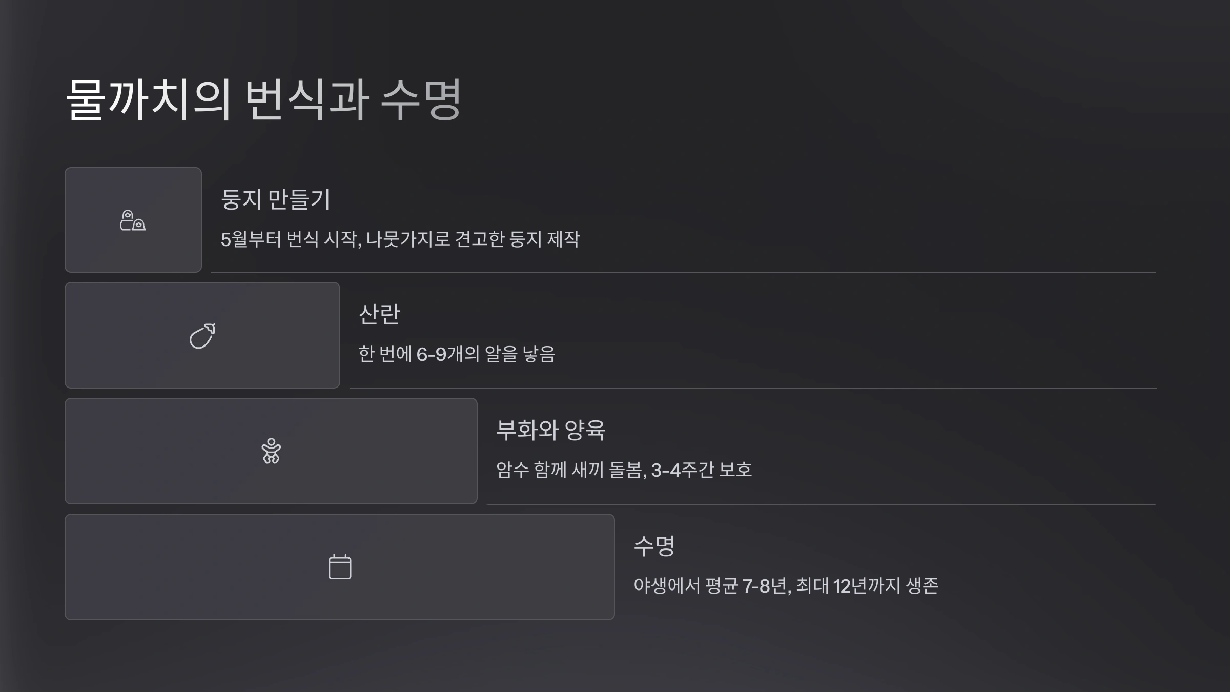 | 둥지 보호 | 번식기 알과 새끼 보호 |