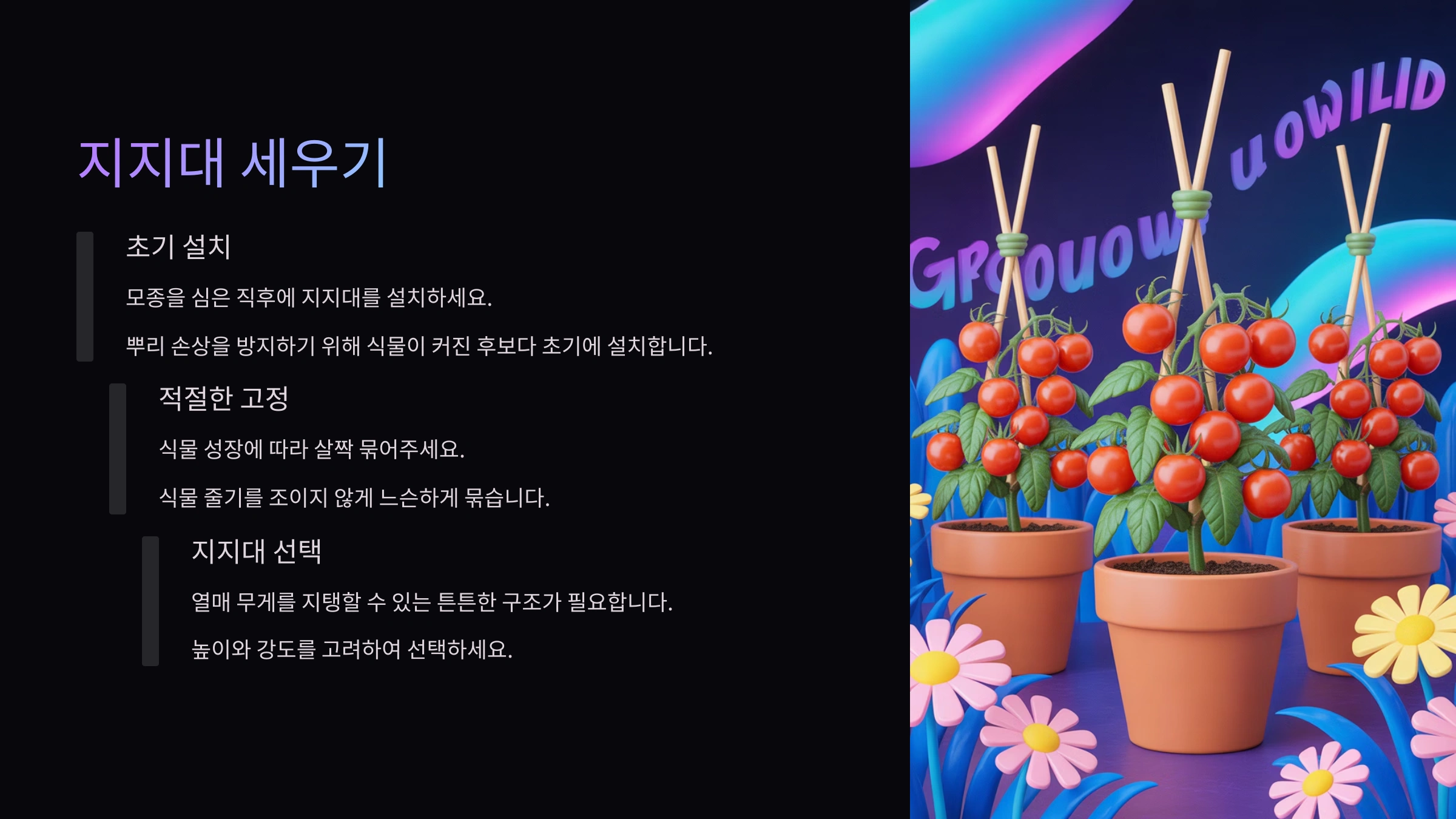 - 쓰러지지 않게! 튼튼한 지지대 세우기