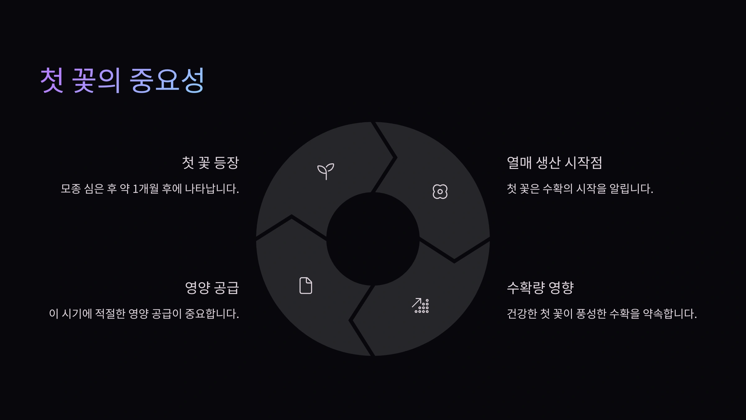 첫 꽃을 제거하는 이유는 식물의 초기 성장에 힘을 실어주기 위해서예요. 식물은 꽃을 피우고 열매를 맺는 데 엄청난 에너지를 사용하는데요, 아직 뿌리가 완전히 자리 잡지 못한 어린 모종이 너무 일찍부터 열매를 키우기 시작하면 성장이 더뎌지고 전체적으로 부실해질 수 있어요. 첫 꽃을 과감히 제거해주면 그 에너지가 뿌리와 줄기를 튼튼하게 만드는 데 쓰여, 결국 더 건강한 식물과 더 많은 수확으로 이어진다는 원리죠. 마치 호랑이가 멀리 뛰기 위해 잠시 움츠리는 것과 같달까요?