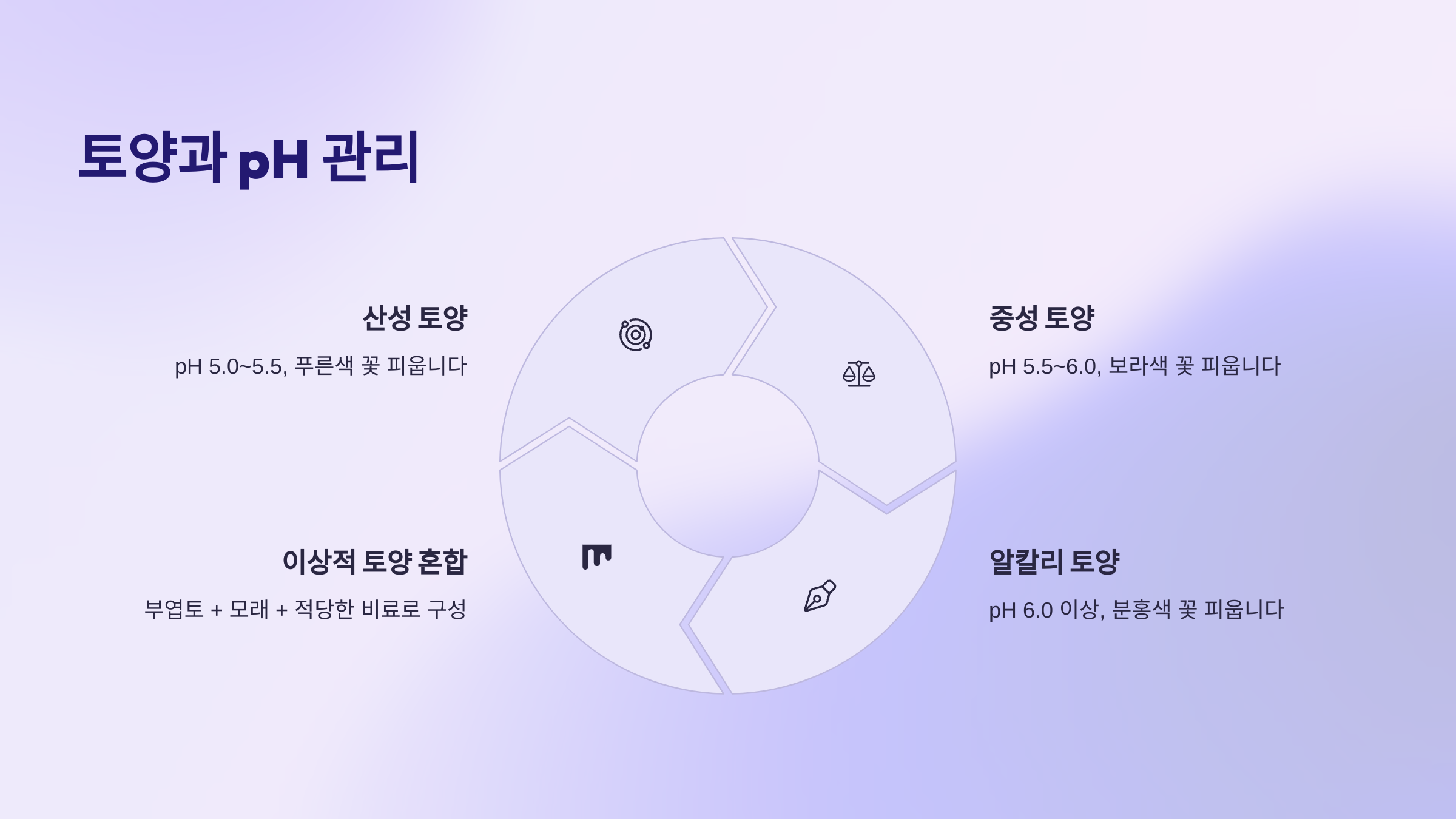 A2. 토양의 산도에 따라 색이 달라져요. 산성 토양이면 파란색, 알칼리성 토양이면 분홍색이에요. 황산알루미늄이나 석회 등을 흙에 섞어 pH를 조절하면 돼요.