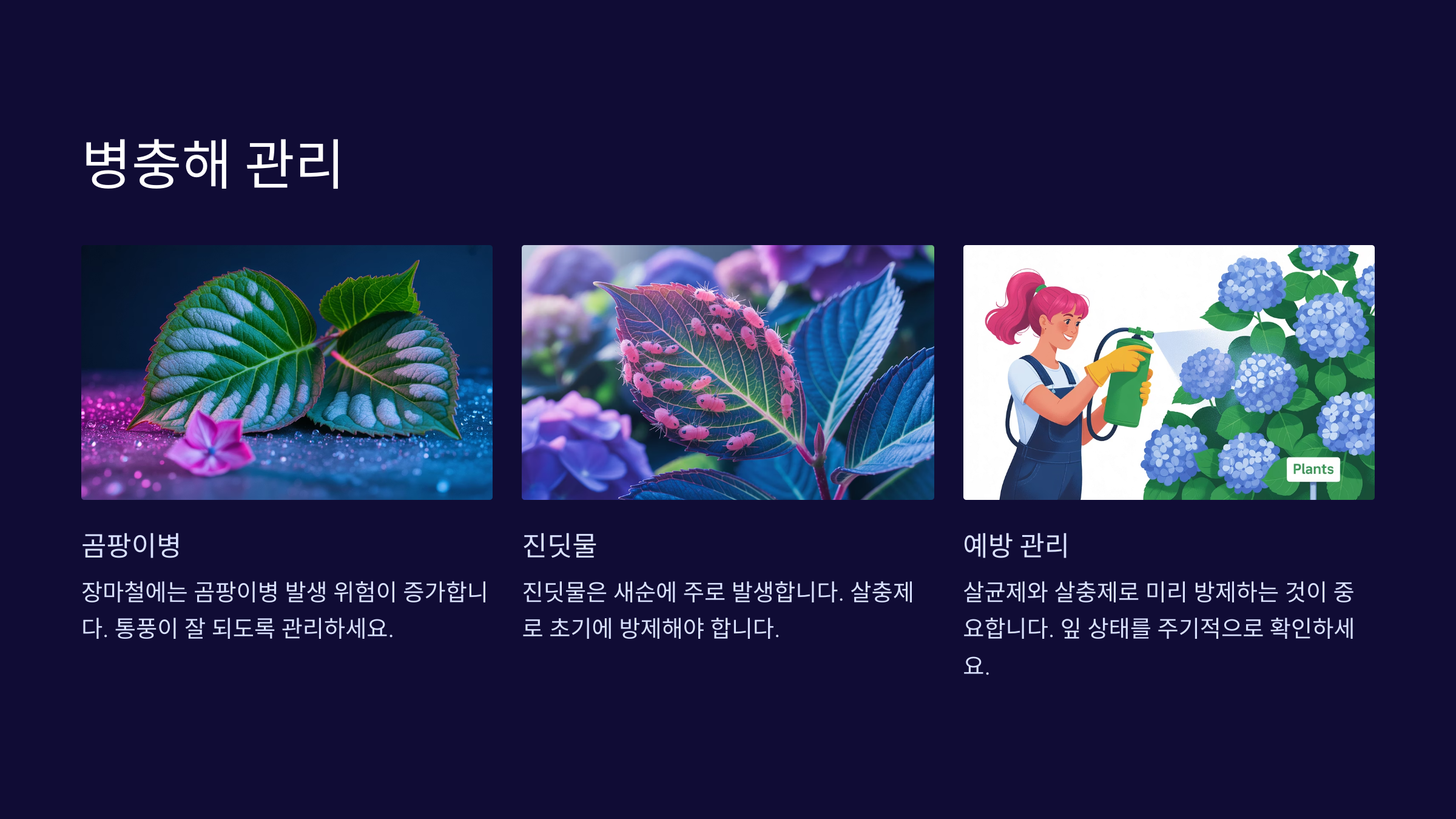 수국을 건강하게 오래 키우려면 기본 관리 외에도 몇 가지 팁과 병해충 예방을 꼭 신경 써야 해요. 수국은 겉보기엔 튼튼해 보여도, 환경 변화나 해충에 예민한 식물이에요. 그래서 평소 관찰이 정말 중요해요! 👀