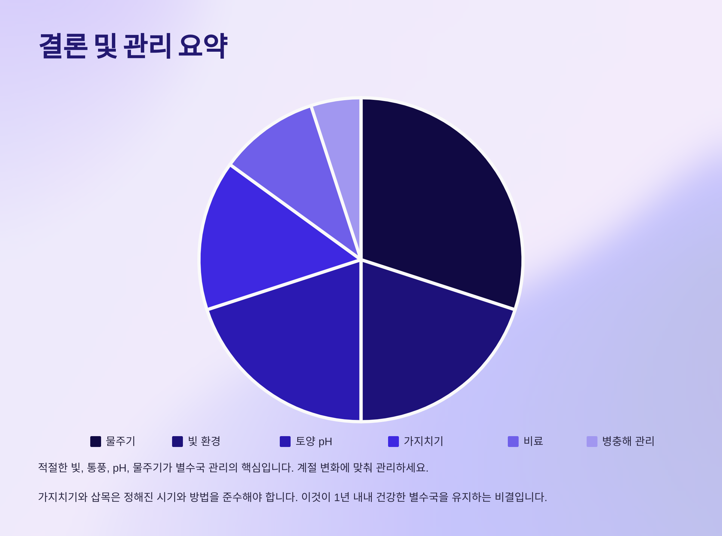 | 병든 가지 발견 시 | 즉시 제거 | 가위 소독 필수 |