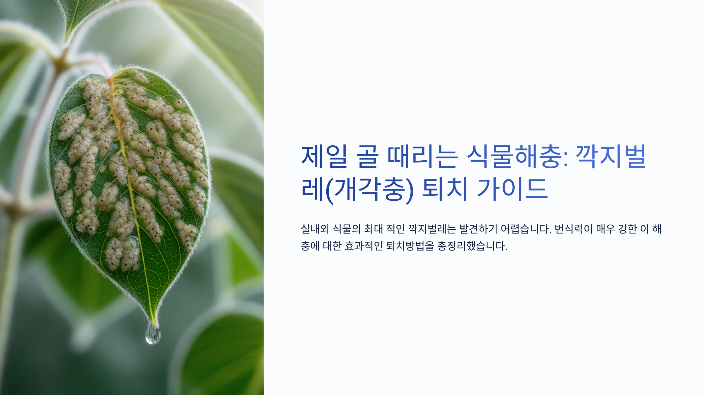 식물을 키우다 보면 예쁜 꽃과 새잎에 마냥 행복하지만은 않죠. 😥 어느 날 갑자기 나타나 애지중지 키운 내 식물을 괴롭히는 불청객, 바로 '깍지벌레' 때문인데요! 이 녀석들, 한번 생기면 어찌나 끈질긴지 정말 골치가 아픕니다. '개각충', '깍지진디' 등 다양한 이름으로 불리기도 하는 이 녀석들, 오늘은 그 정체를 파헤치고 효과적인 퇴치 방법과 예방법까지 꼼꼼하게 알아보도록 할게요! 😊