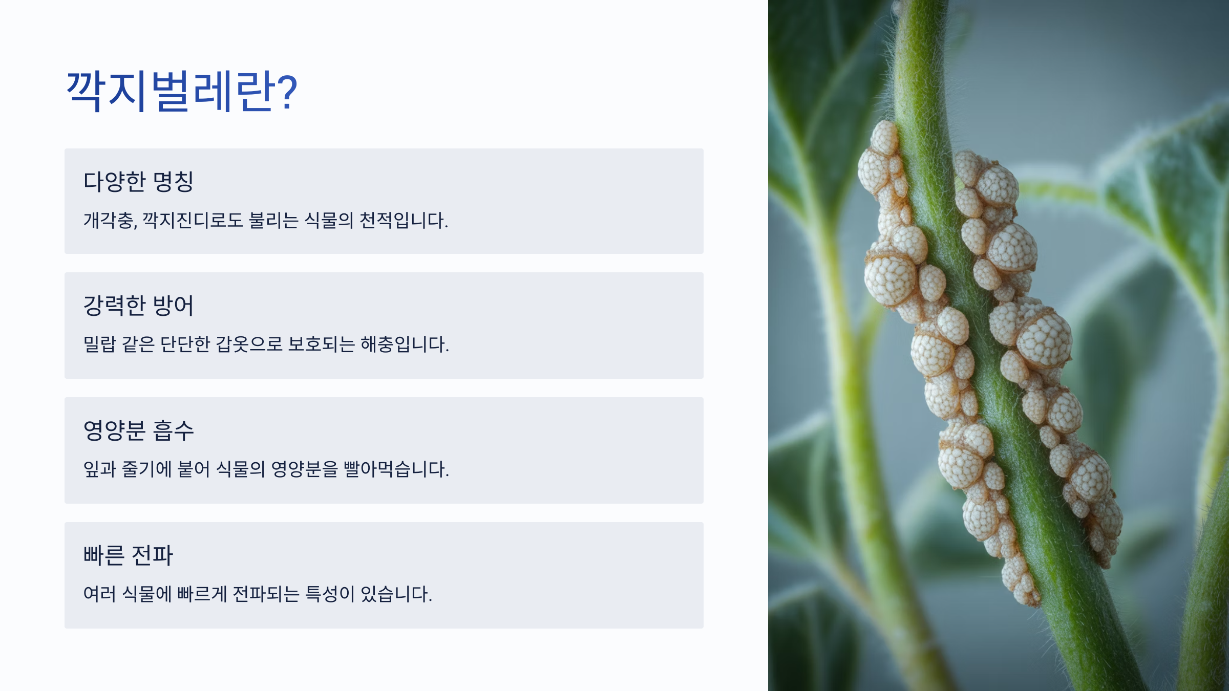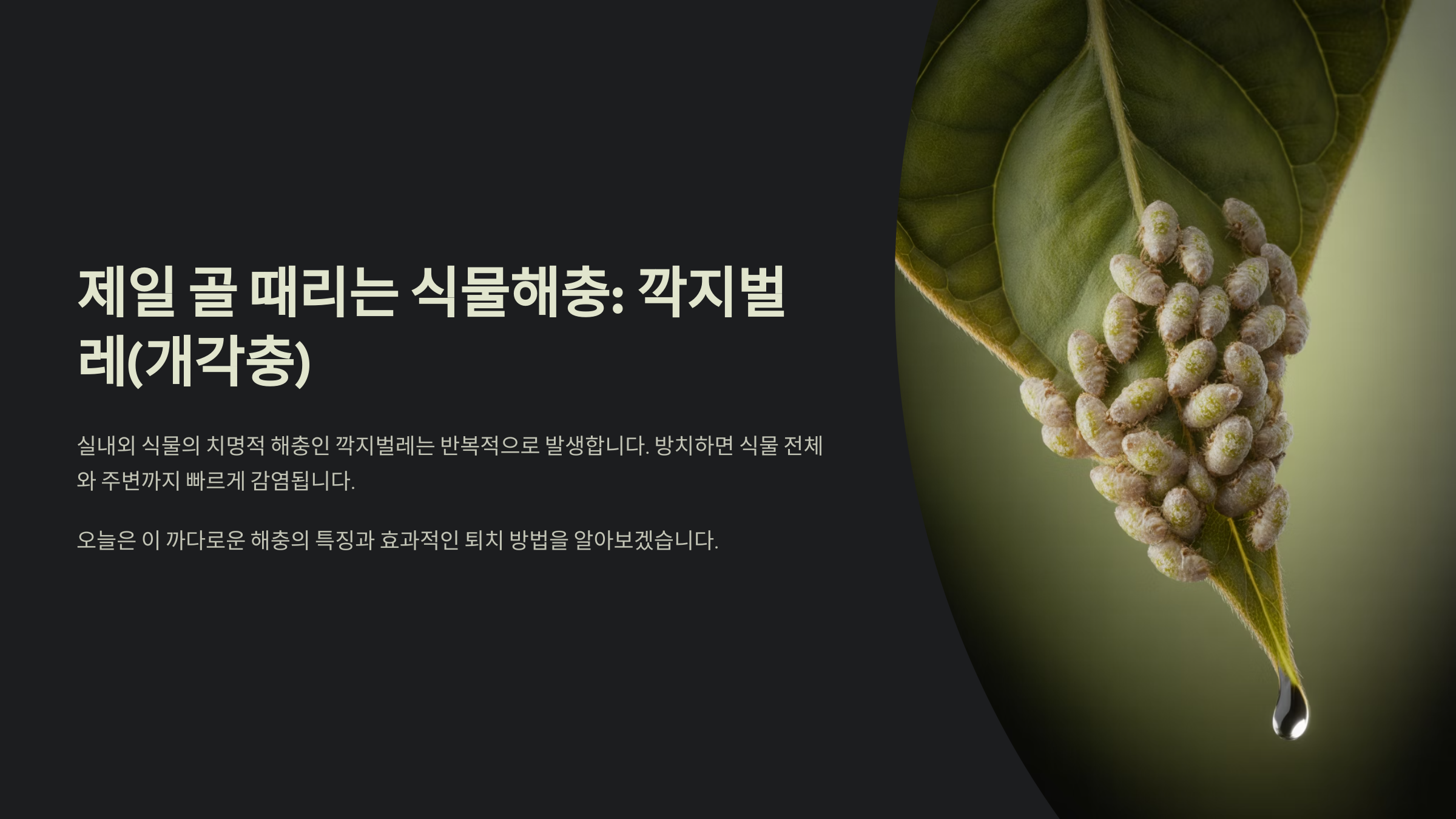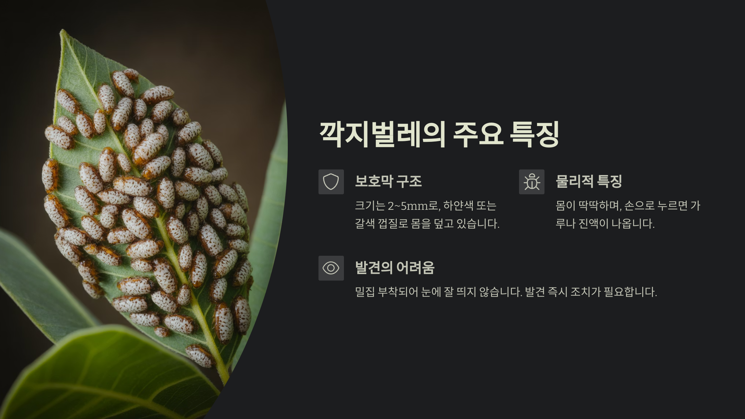 식물을 키우다 보면 예쁜 꽃과 새잎에 마냥 행복하지만은 않죠. 😥 어느 날 갑자기 나타나 애지중지 키운 내 식물을 괴롭히는 불청객, 바로 '깍지벌레' 때문인데요! 이 녀석들, 한번 생기면 어찌나 끈질긴지 정말 골치가 아픕니다. '개각충', '깍지진디' 등 다양한 이름으로 불리기도 하는 이 녀석들, 오늘은 그 정체를 파헤치고 효과적인 퇴치 방법과 예방법까지 꼼꼼하게 알아보도록 할게요! 😊