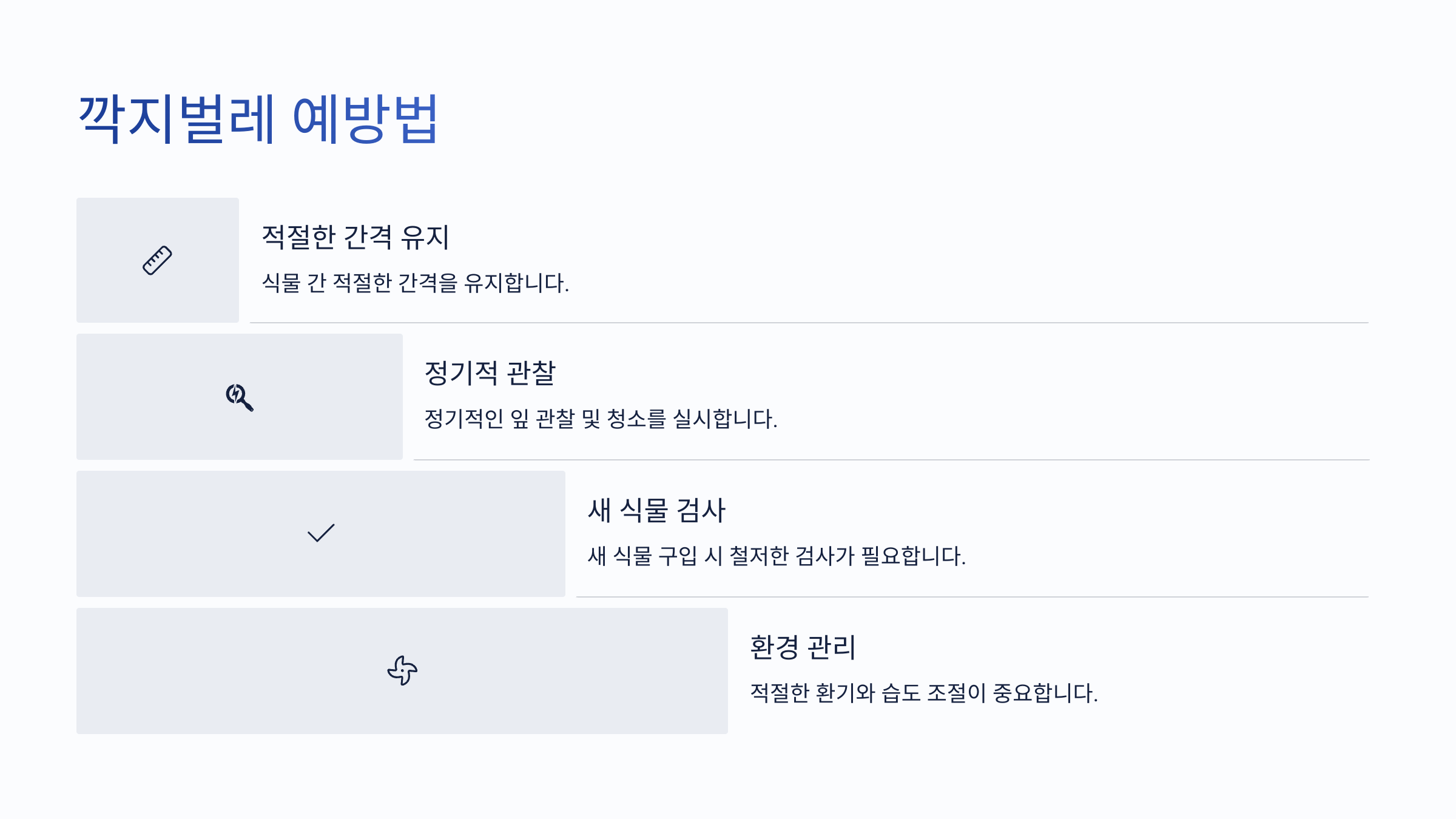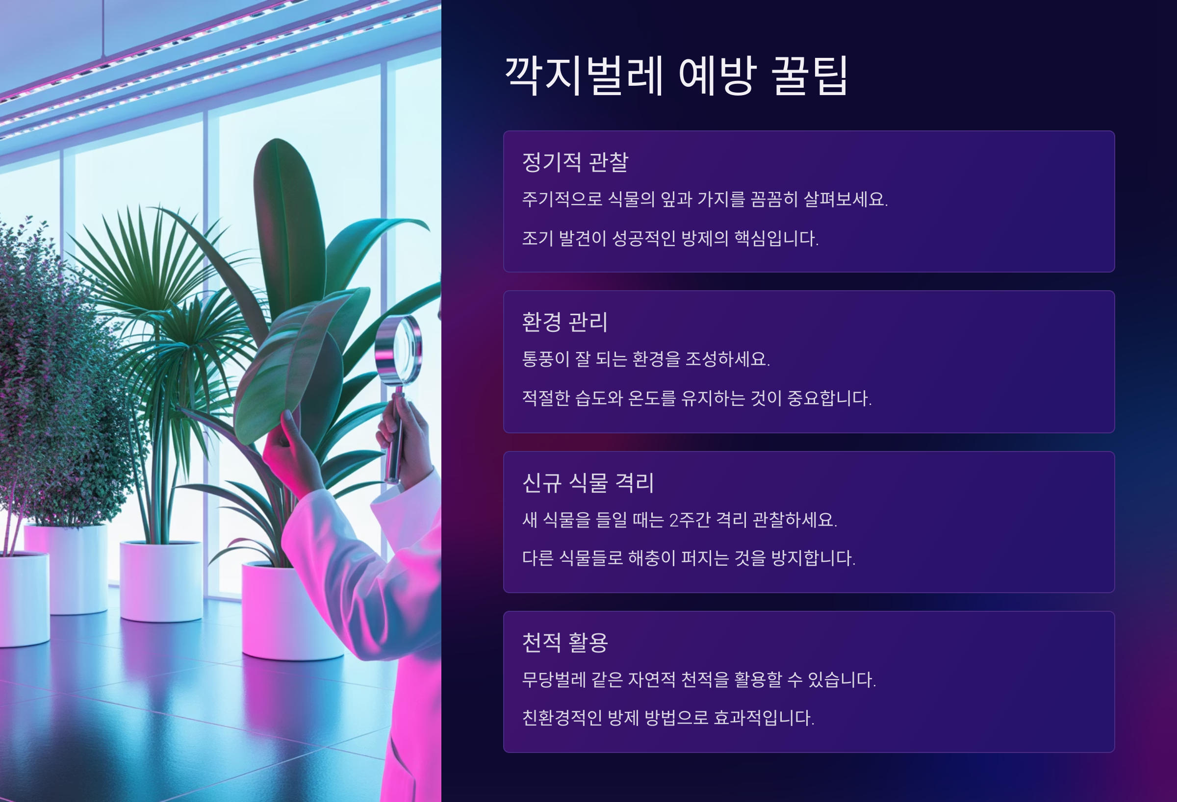 깍지벌레는 한번 생기면 퇴치가 어렵기 때문에 예방이 무엇보다 중요해요. 평소에 조금만 신경 쓰면 깍지벌레 없는 건강한 반려 생활을 즐길 수 있답니다!