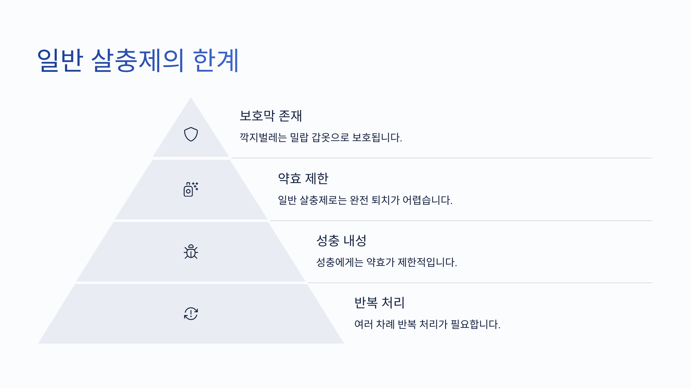 - 발견 즉시 대처: 초기에 물리적으로 제거하는 것이 가장 효과적!
