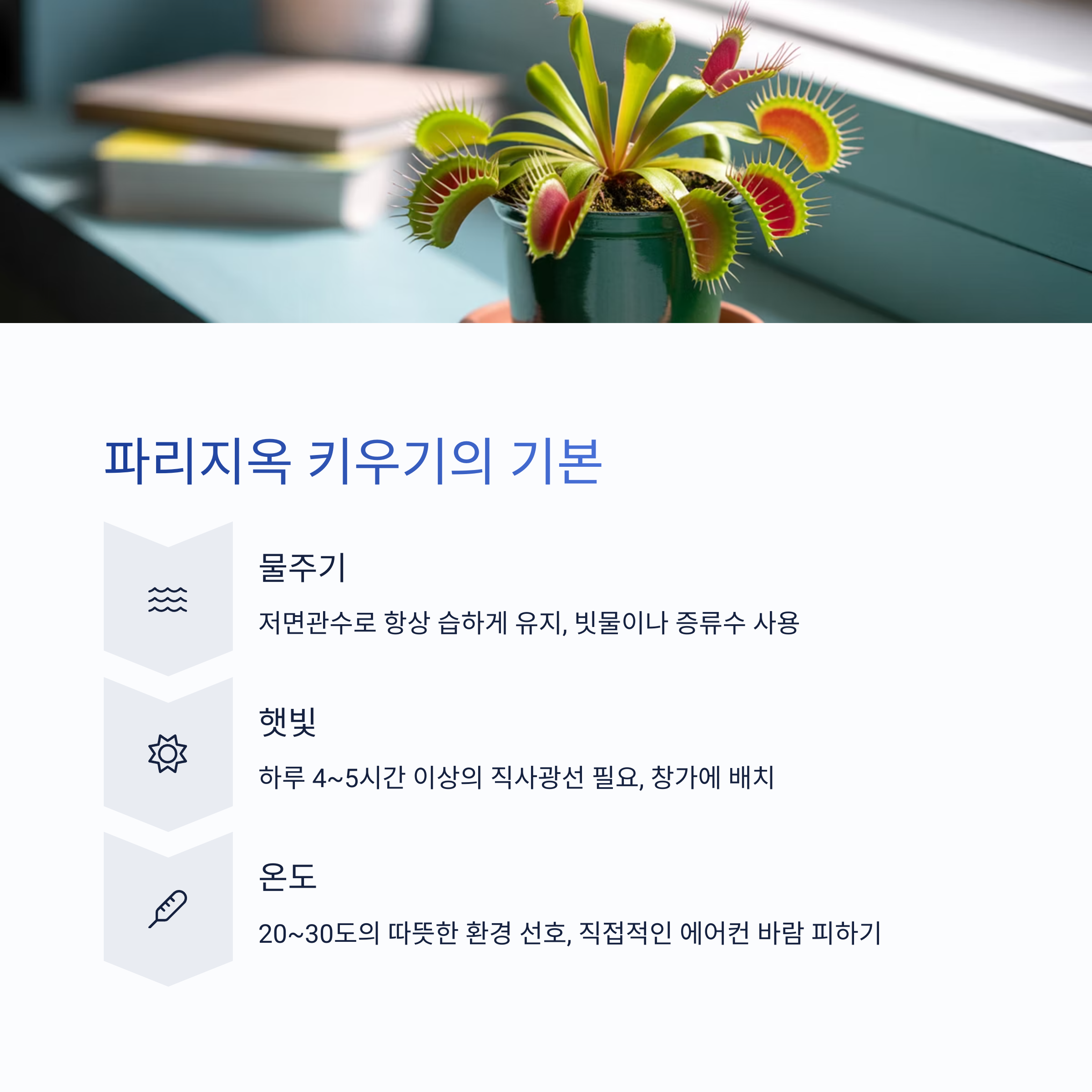 자, 그럼 이제 식충식계의 아이돌! 파리지옥을 건강하게 키우는 방법에 대해 본격적으로 알아볼까요? 몇 가지 핵심만 기억하면 초보 식집사도 파리지옥을 멋지게 키울 수 있답니다.
