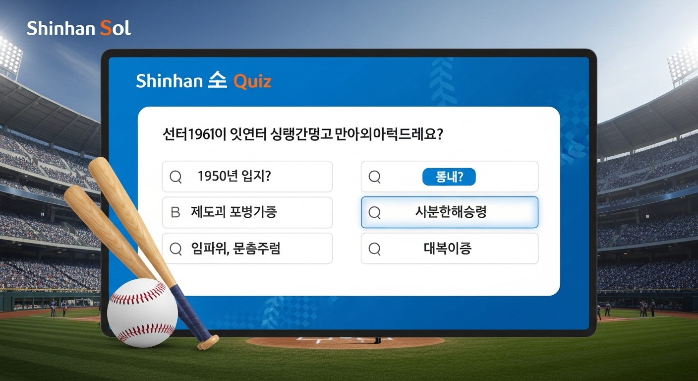 그중에서도 많은 분이 눈을 뜨자마자 확인하는 것이 바로 신한 쏠(SOL)에서 진행되는 야구상식 퀴즈가 아닐까 싶습니다.