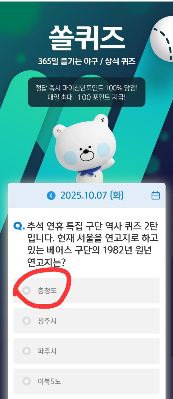 - 쏠퀴즈 이벤트 일정은 KBO 및 은행 사정에 따라 변경 또는 조기 종료 가능