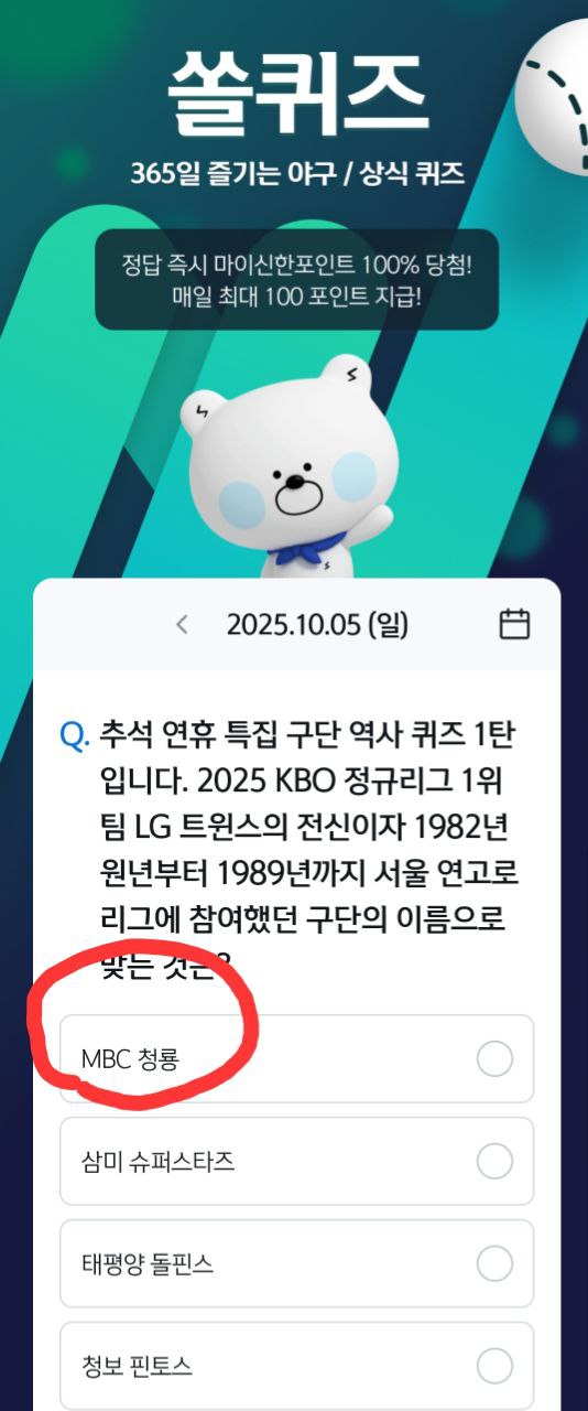 쏠퀴즈는 야구 상식을 기반으로 한 퀴즈 이벤트예요.