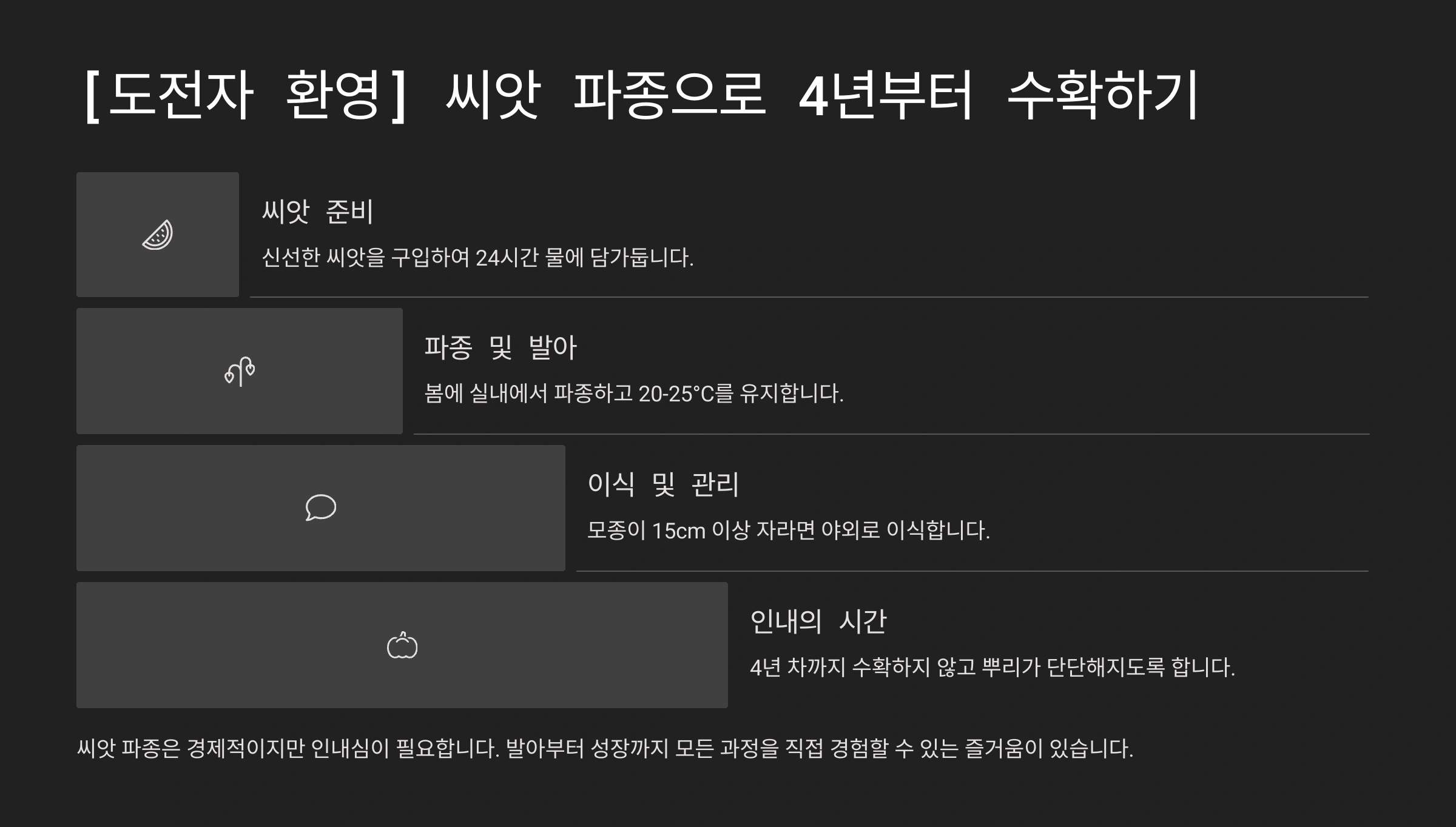3. [도전자 환영] 씨앗 파종으로 4년부터 수확하기 🌱