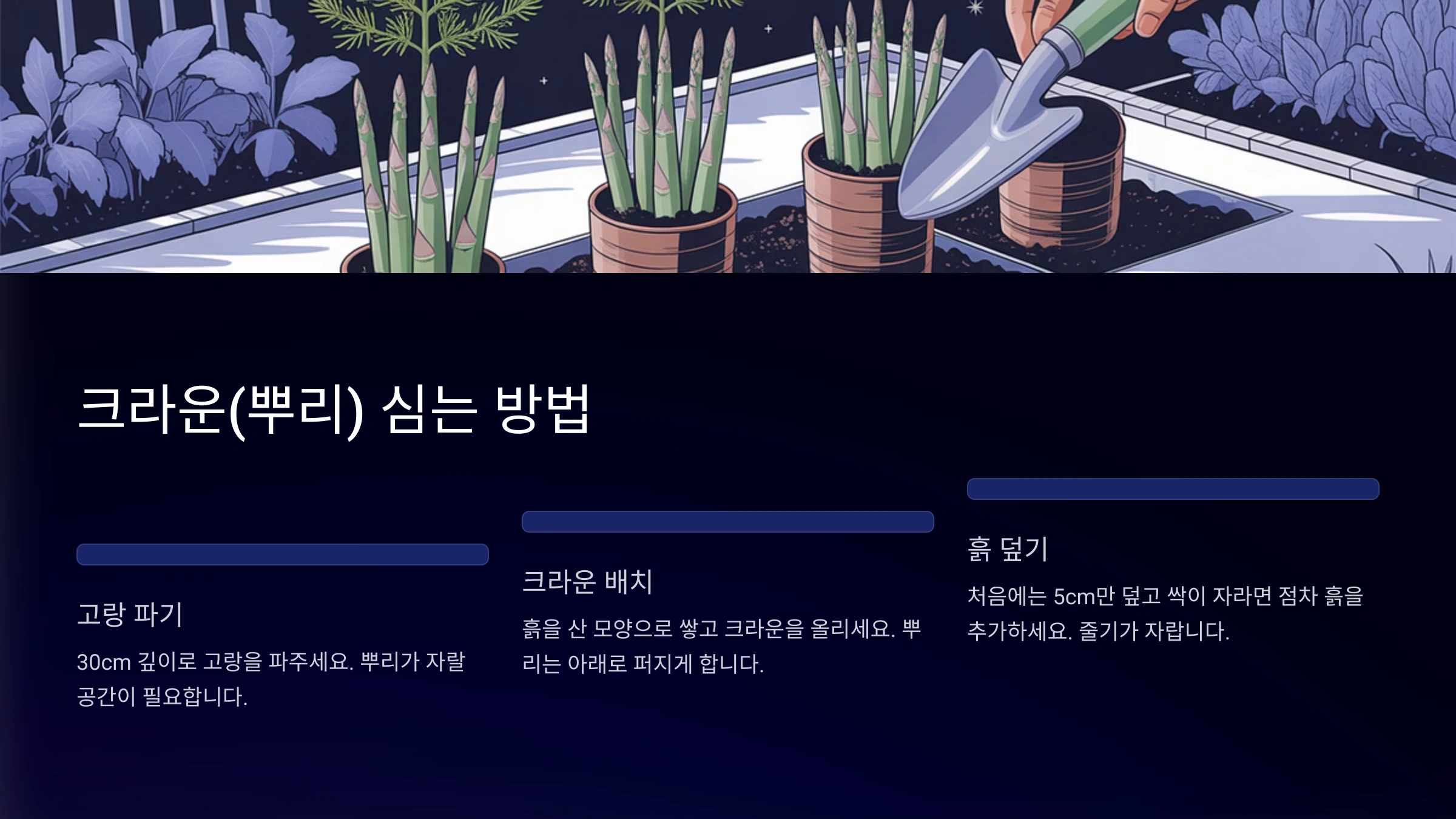 조금의 인내심만 있다면 누구나 집에서 신선한 아스파라거스를 맛볼 수 있답니다. 오늘 알려드린 방법으로 여러분의 텃밭을 더욱 풍성하게 만들어보시는 건 어떨까요? 더 궁금한 점이 있다면 언제든 댓글 남겨주세요! 😊