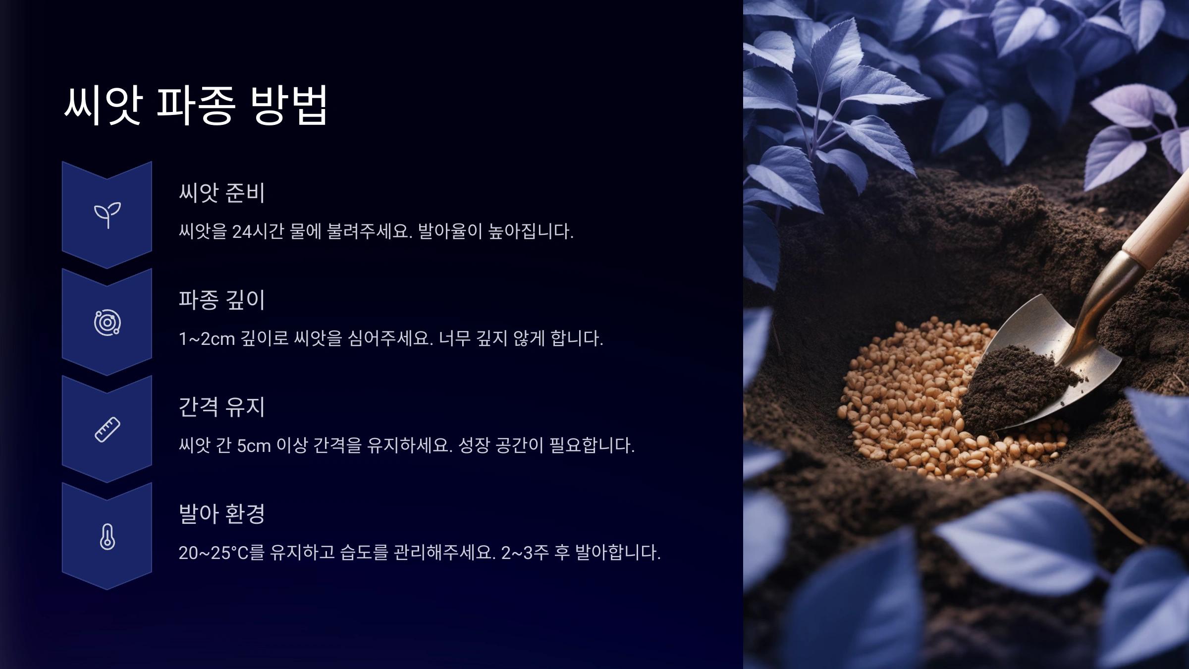 | 추천 대상 | 텃밭 초보자, 빠른 수확을 원하는 분 | 시간적 여유가 있는 분, 대량 재배 희망자 |
