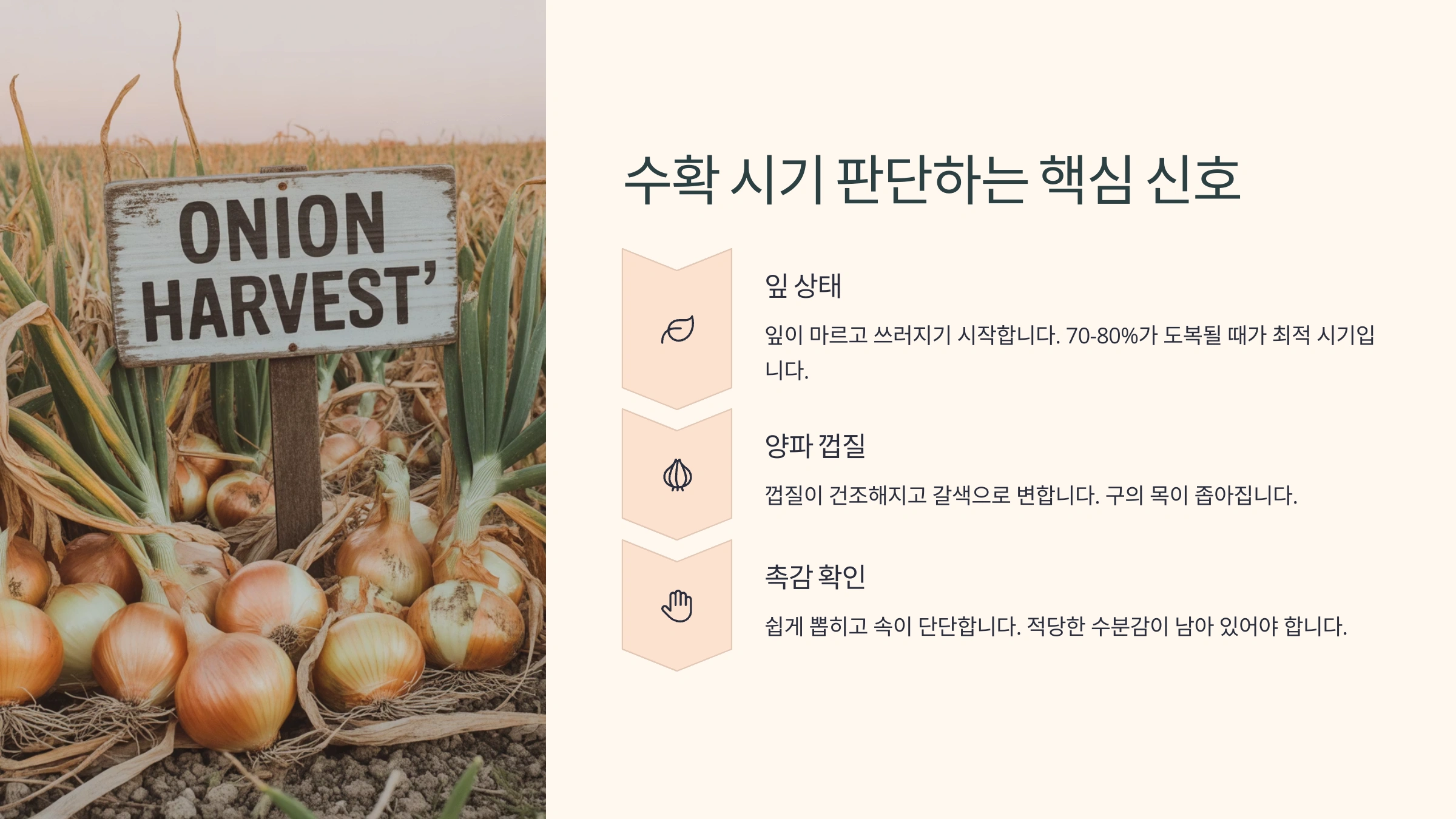 📌 양파 수확 타이밍 신호 체크표