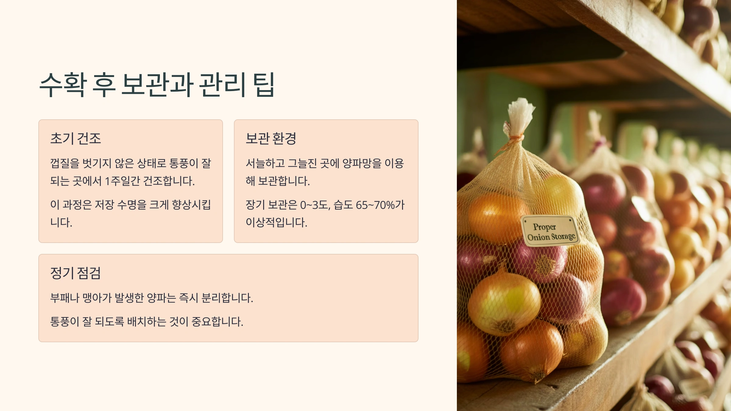 🧅 수확 후 보관 방법 요약표