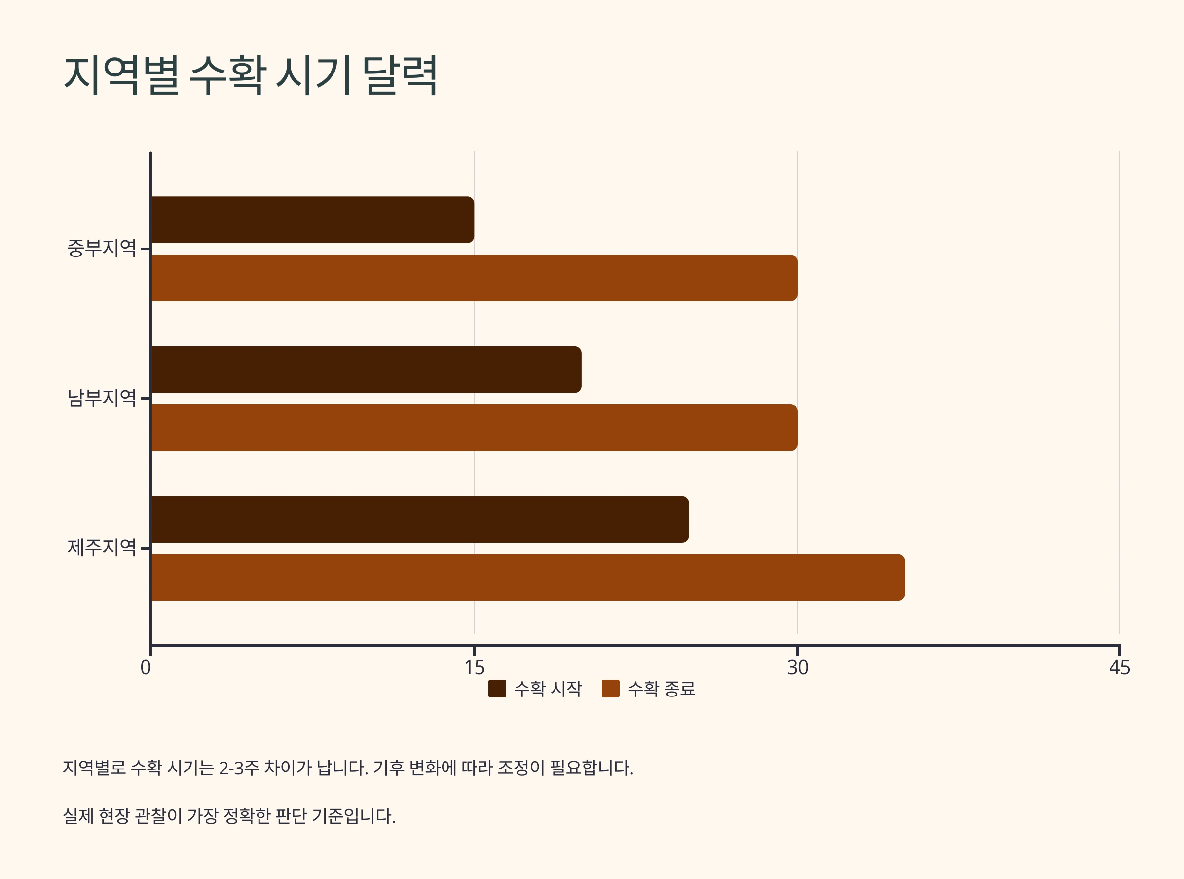 | 제주도 | 5월 초~5월 중순 | 가장 빠른 수확 지역 |