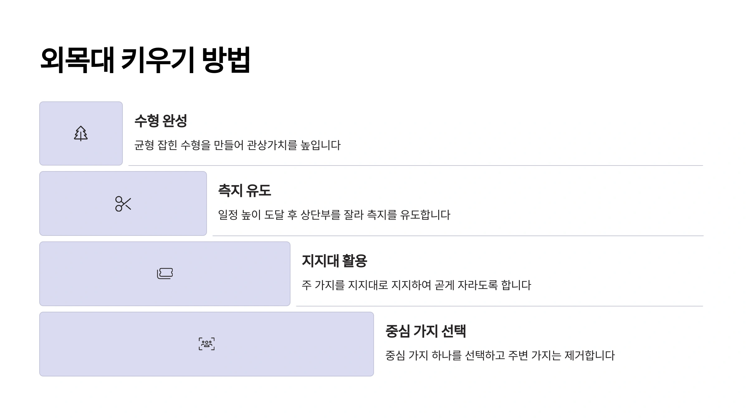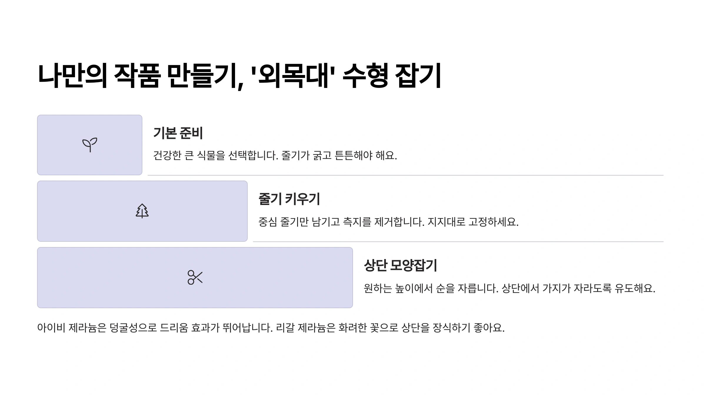 5. 나만의 작품 만들기, '외목대' 수형 잡기 🌳