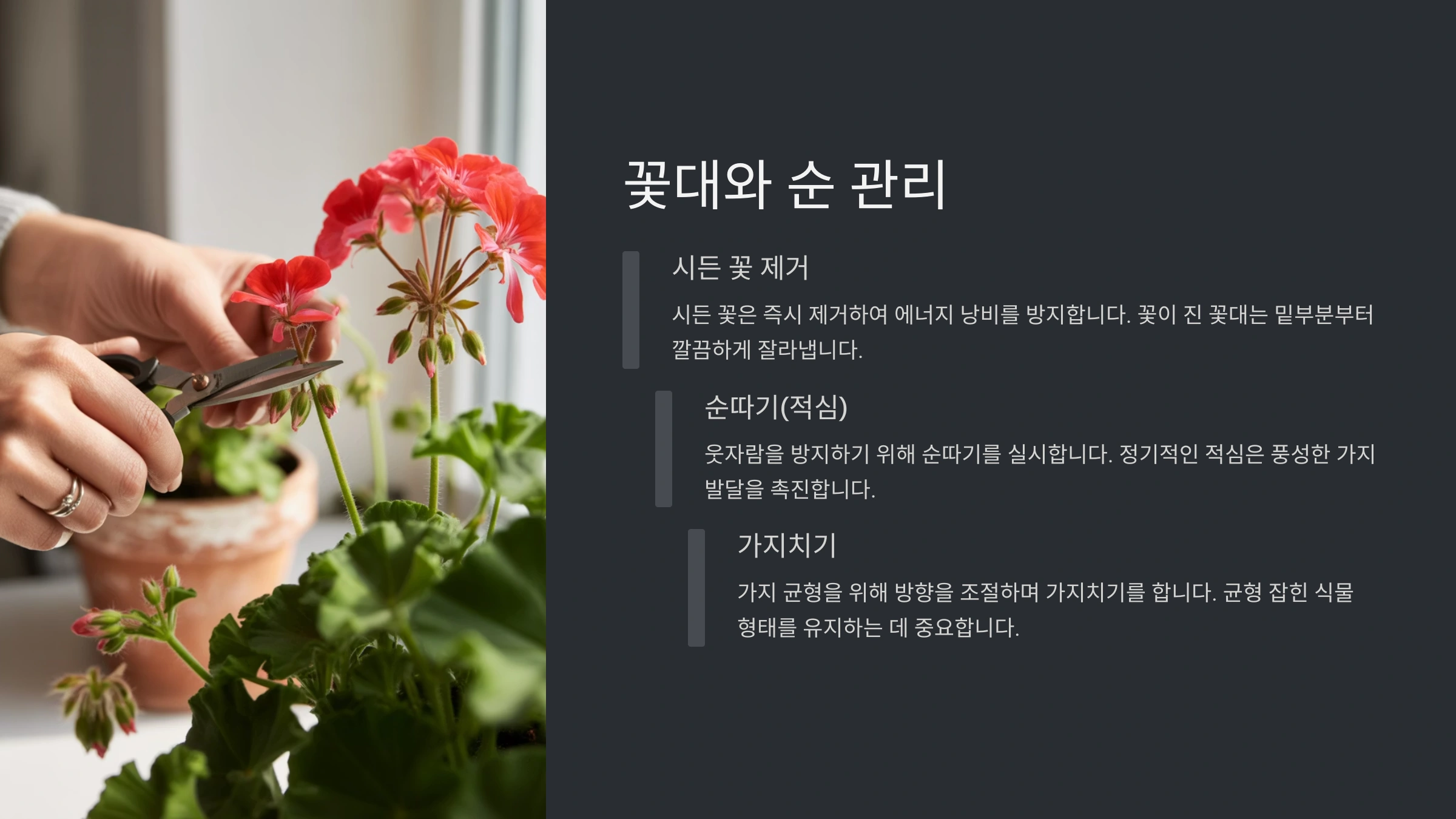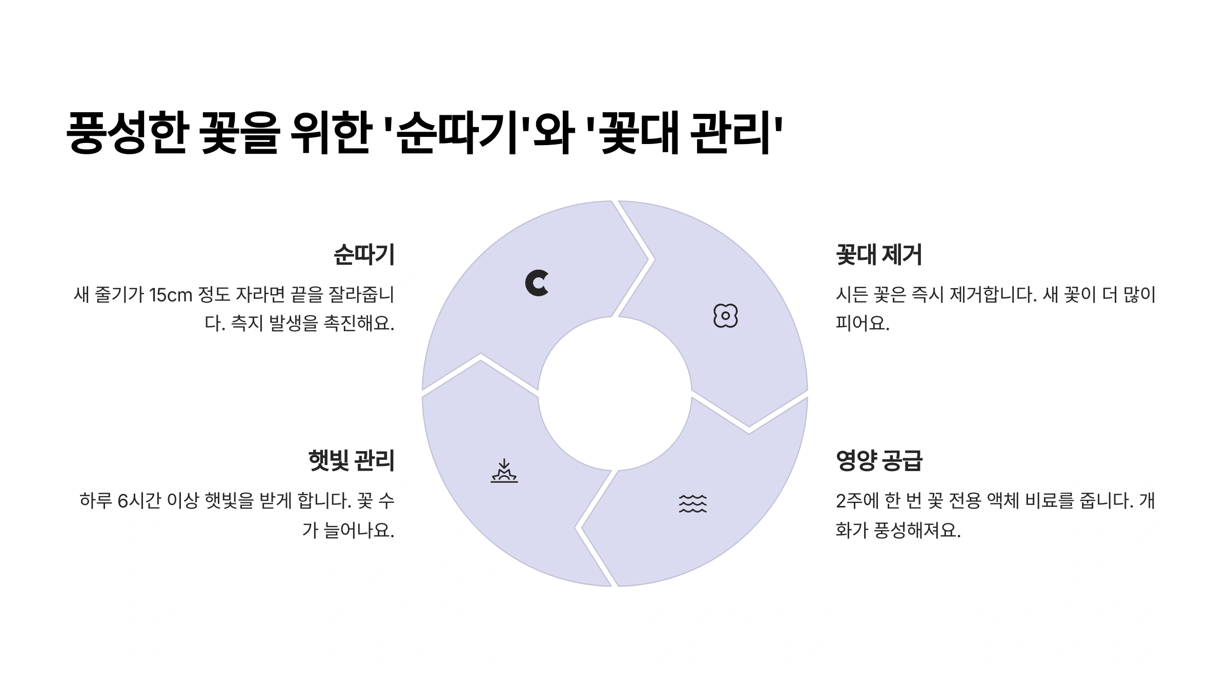 4. 풍성한 꽃을 위한 '순따기'와 '꽃대 관리' 🌸
