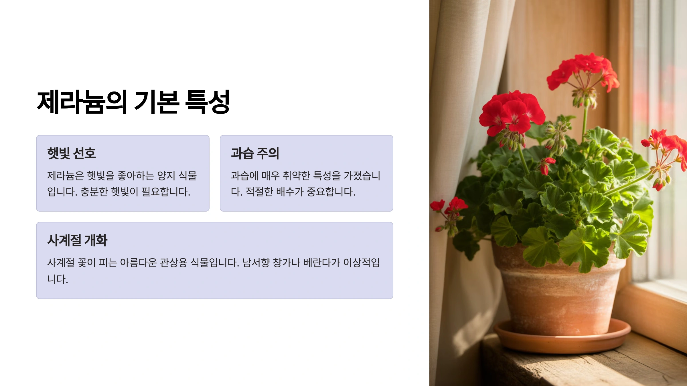 창가에 화사하게 피어있는 제라늄 꽃을 보면 마치 작은 유럽 정원에 온 것 같은 기분이 들지 않나요? 😊 독특한 잎사귀 향기와 화려한 색감, 그리고 조금만 신경 써주면 사계절 내내 꽃을 보여주는 기특함까지! 제라늄은 정말 많은 매력을 가진 식물인 것 같아요. 하지만 예쁜 만큼이나 "물은 언제 줘야 하지?", "가지치기는 어떻게?", "여름만 되면 죽어요ㅠㅠ" 하며 어려워하는 분들도 많으시죠. 그래서 오늘은 2025년 6월, 바로 지금부터 꼭 알아야 할 제라늄 키우기의 모든 비밀을 파헤쳐 보려고 합니다! 🌿
