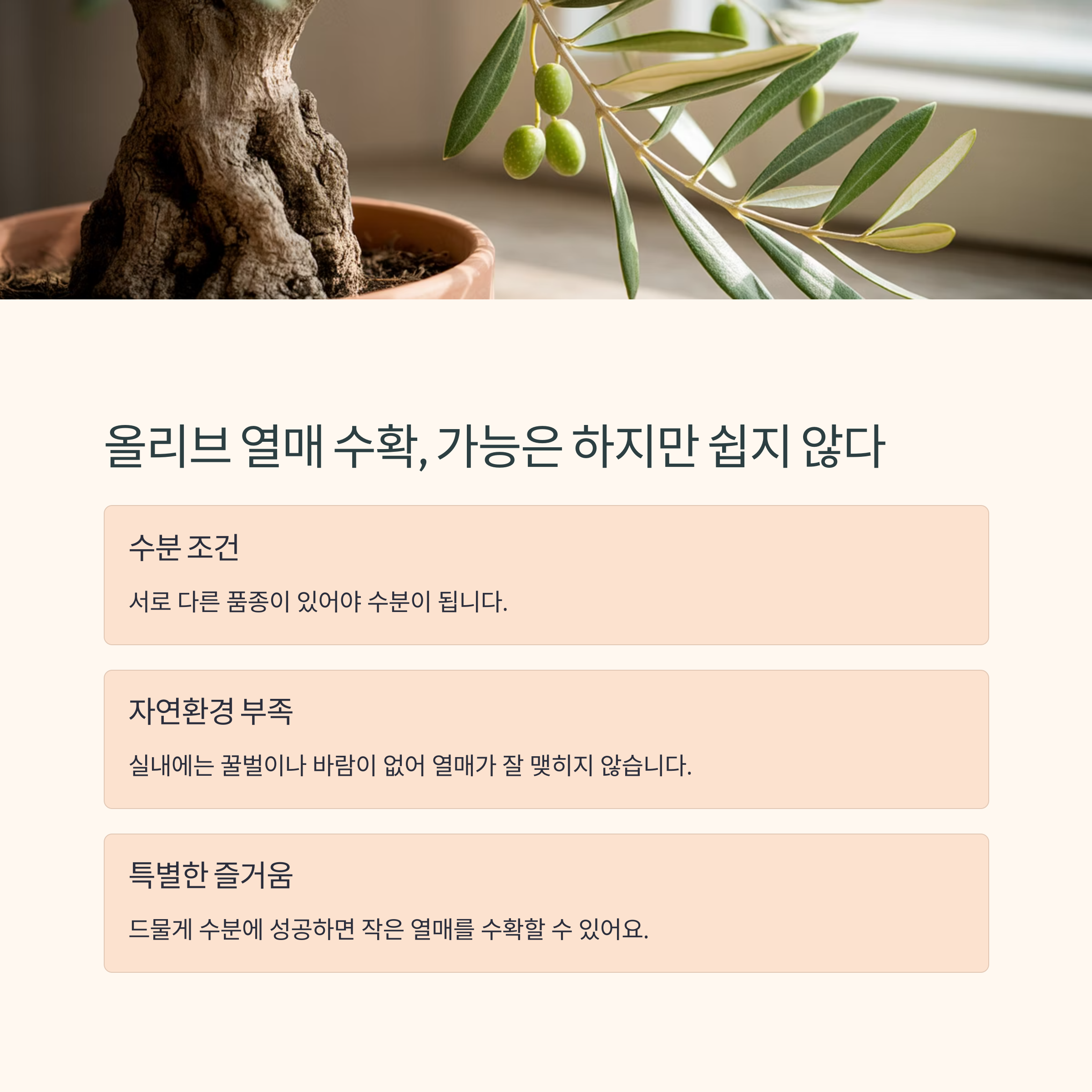 올리브 열매 수확, 가능은 하지만 쉽지 않다
