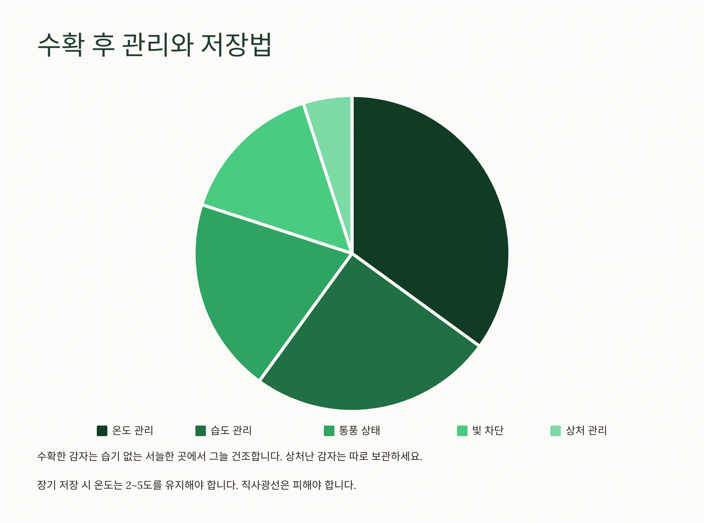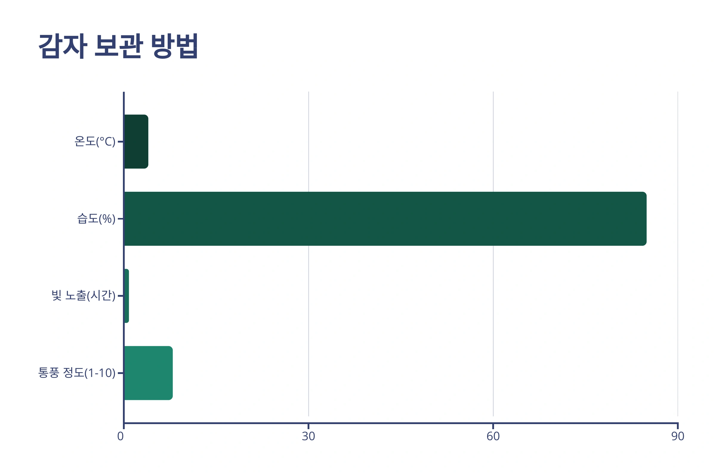 - 수확 후 관리 (큐어링): 수확한 감자는 바로 햇볕에 노출시키면 좋지 않아요. 그늘지고 통풍이 잘 되는 곳에서 며칠간 말려주면(큐어링) 상처가 아물고 저장성이 높아집니다.